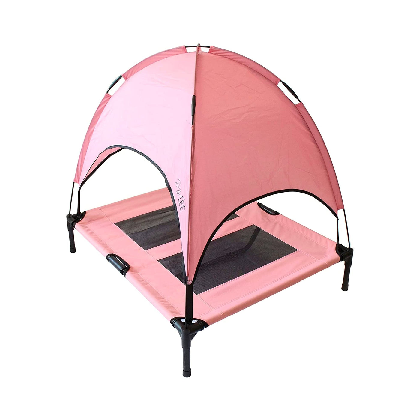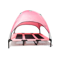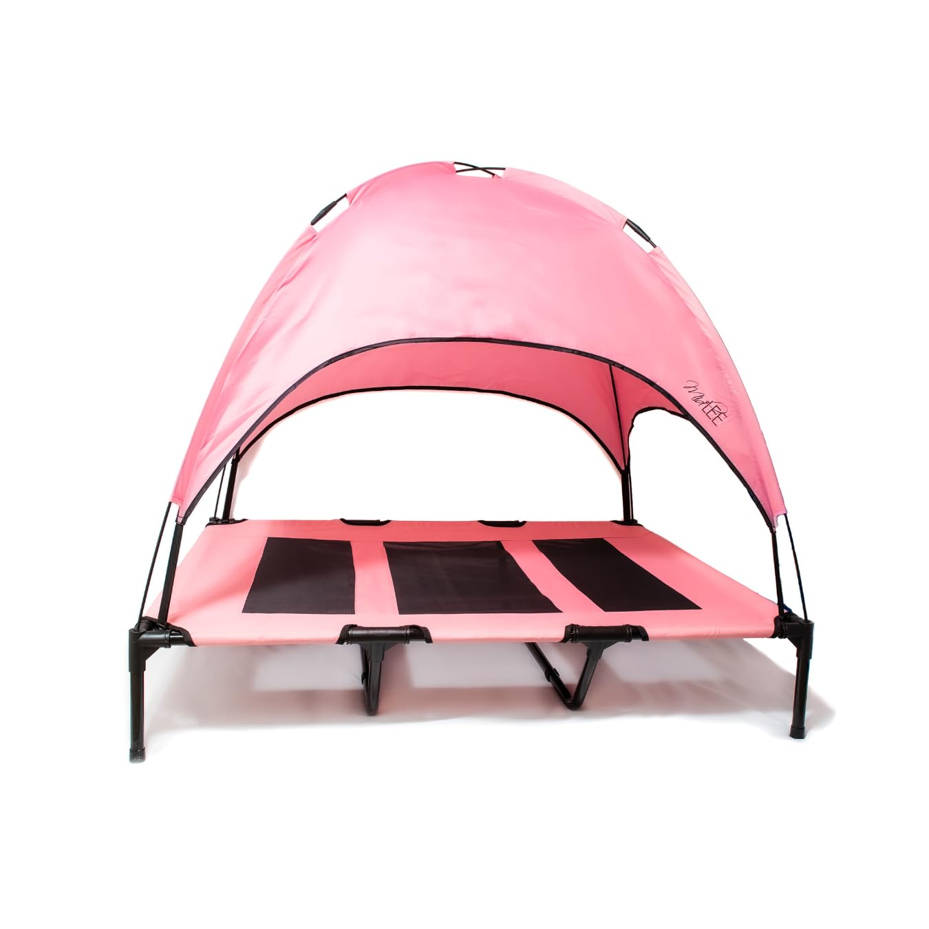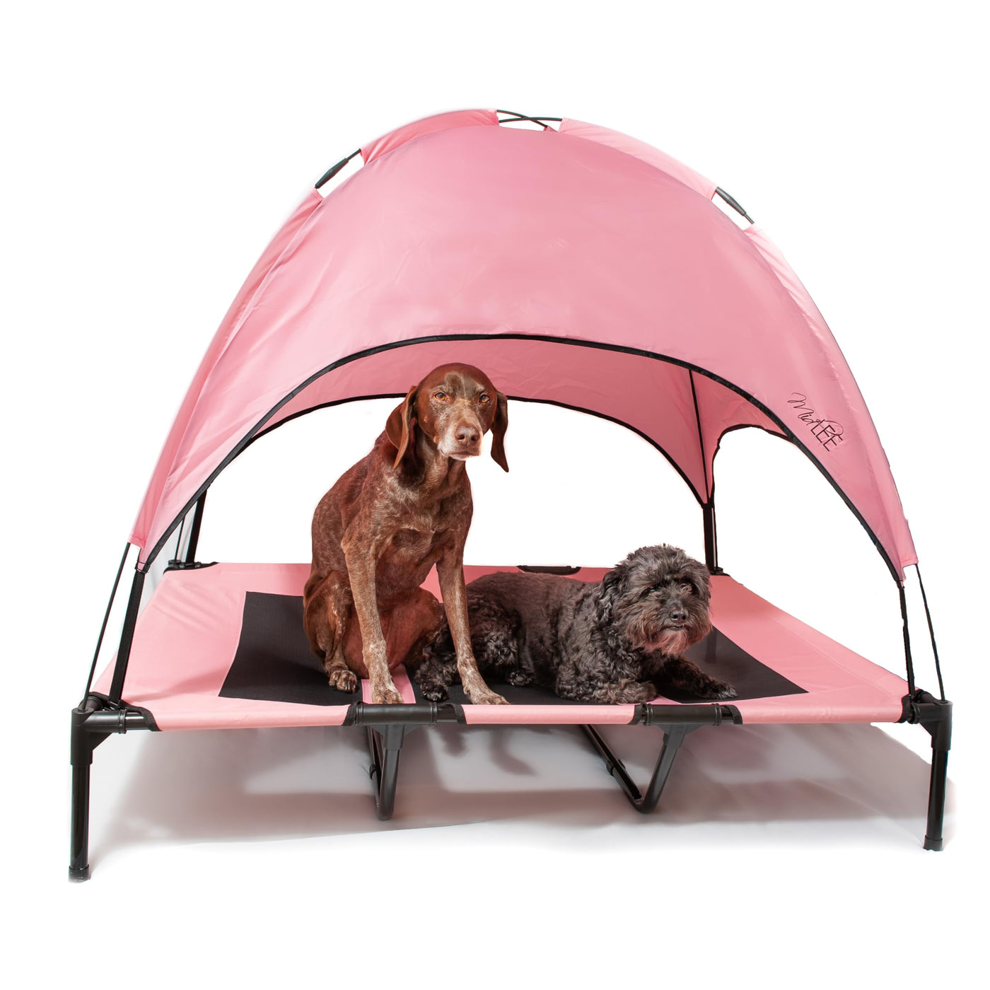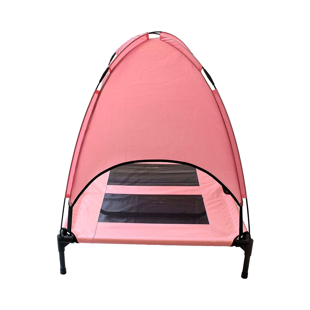Measures 30'' X 36''. Best For Medium To Large Sized Dogs. Keep Your Dog Cool Outside With This Raised Dog Bed. The Mesh Helps Keeps Air Flowing And Your Dog Stays Cool Outside. Elevated Off The Ground And With The Canopy Giving Your Pet Shade Above Your Dog Will Love Choosing This Bed For A Warm Summer Day Laying Outside. Multiples Uses In The Backyard, Next To The Pool, On The Beach, Camping, And Inside When A Off The Ground Bed Is Needed. The Canopy Is Removable And The Dog Cot Comes With A Carrying Bag For Easy Storage And Hauling. Lightweight And Easy To Assemble, This Dog Cot Bed Can Be Used Indoors Or Outdoors.
