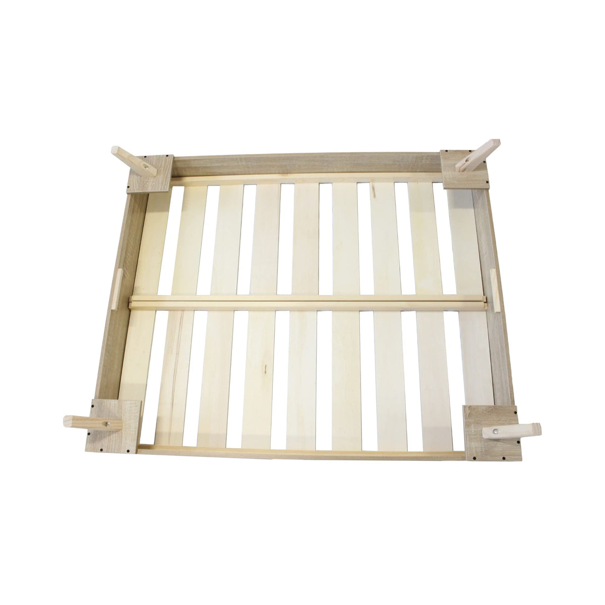 Get your dog's favorite bed off the floor and keep them comfortable all night long with the Midlee Raised Wooden Dog Bed Frame. The modern design of this elevated dog bed will fit right into any home's decor. Includes a smooth, light wood shade/color and is made from Poplar wood. The frame is easy to clean, just wipe with soapy water and dry off with a clean towel. Ships flat. Assembly required. Tools included. Bed and/or pillow is NOT included. Overall dimensions: 45' x 37' x 11'. Front edge: 9' off ground. Interior dimensions for bed: 44' x 36', BED not included.