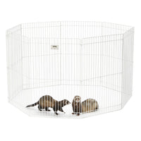 Attractive Epoxy Coated Panels Provide Ample Play Area (9 Sq. Ft.). Appropriate For Ferrets, Rabbits, Guinea Pigs, Rats, Small Breed Puppies And Kittens. Great For Indoor Or Outdoor Use. Folds Flat For Storage & Travel. Size: (8 Panels) 29'' H X 18''. Wire Finish: White Epoxy Powder Coated.