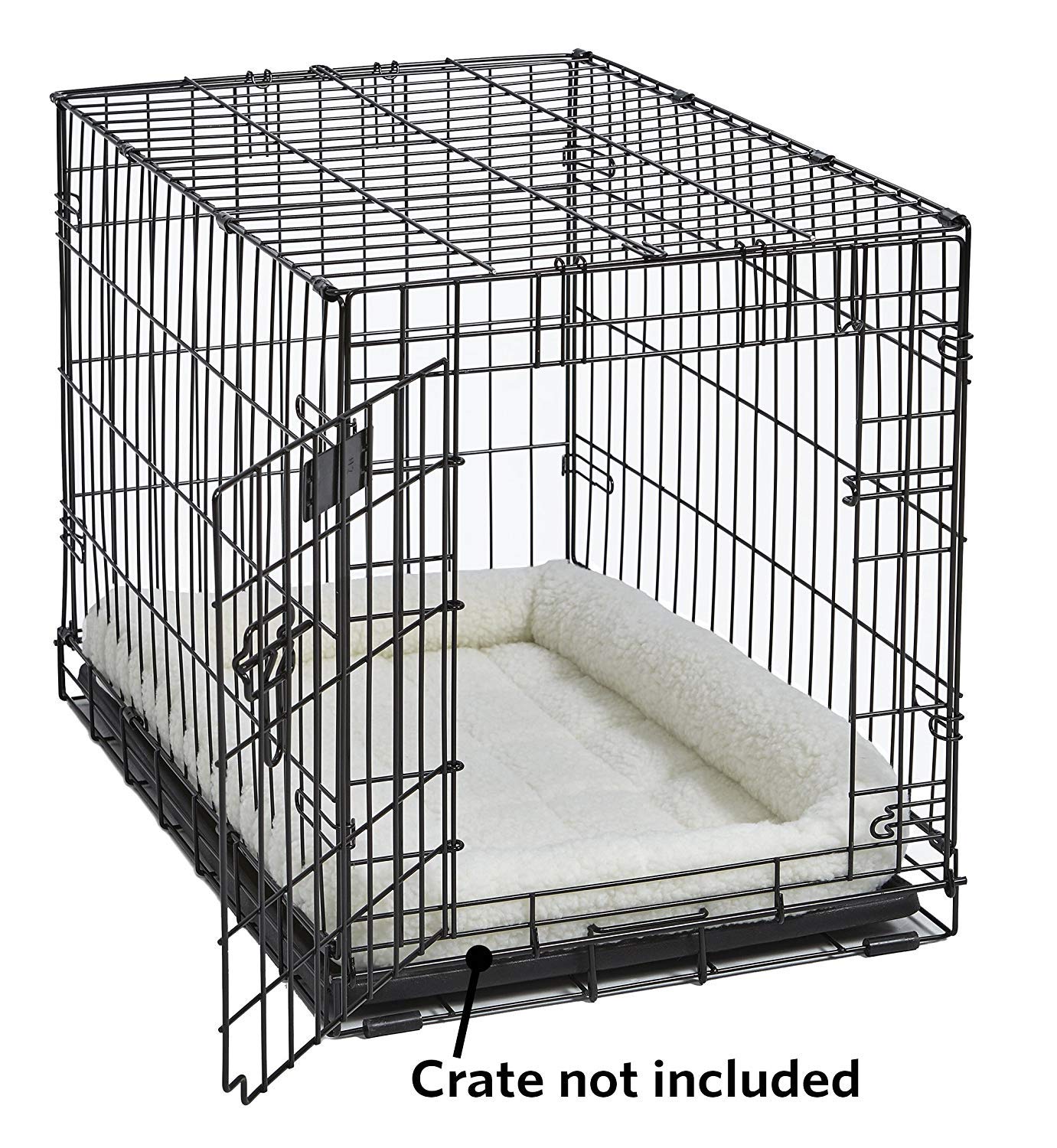 Large dog bed fits 42-inch long dog crates & works great as a stand-alone pet bed Pet bed is ideal for large dog breeds weighing up to 71 - 90 pounds *Pet bed is not ideal for excessive chewers TURN YOUR DOgS cRATE INTO THEIR FOREVER HOME The elastic corner straps secure the pet bed to the crate pan to prevent sliding and bunch enticing your pet to use their crate Pet bed features ultra-soft fleece top & comfortable padded polyester bolster cushion around the perimeter for dogs to lay their head on Ideal dog bed for folding metal dog crates dog carriers & dog houses This specific size fits a 42-inch MidWest icrate Life Stages & Ultima Pro dog crate EASY MAINTENANcE PET BED 100 % machine washable & dryer friendly w a 1- Year MIDWEST QUALITY gUARENTEE Manufacturers Warranty Family Owned for Over 100 Years customer and product support provided from our headquarters in Indiana