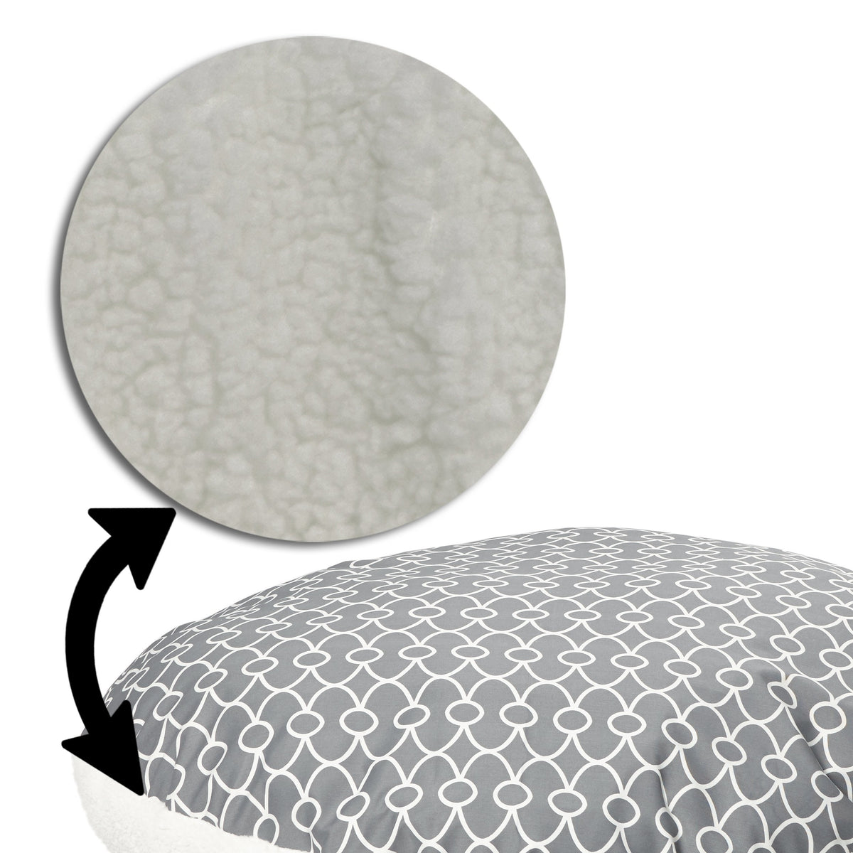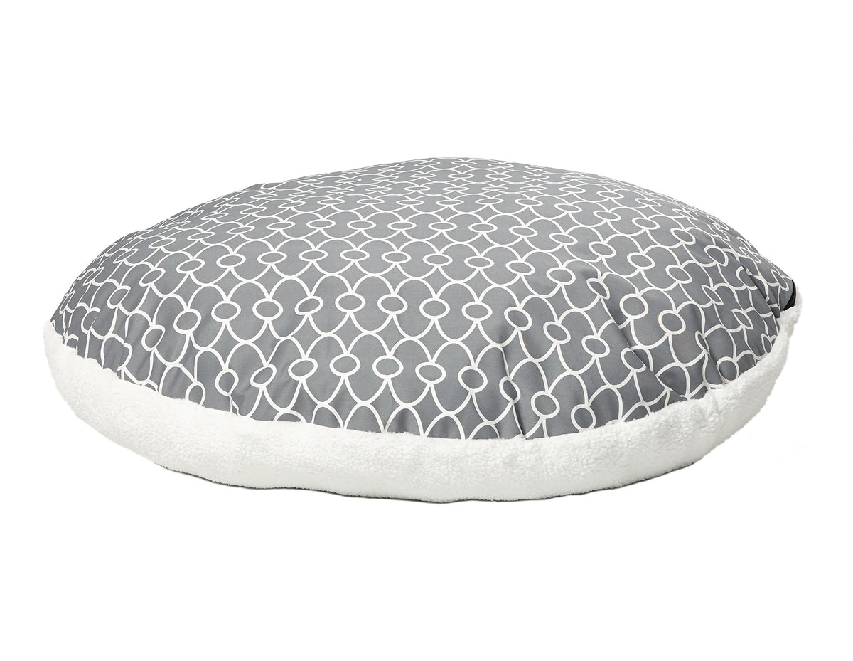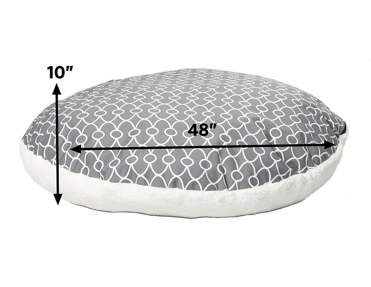 Midwest Quiet Time(R) Defender Series Geo-Gray Round Pillow Dog Bed With Teflon(R) Fabric Protector Quiet Time Beds Have Teamed Up With Teflon(R) To Bring The Latest Fabric Technology To Dog Beds. The Teflon(R) Fabric Protector Is Built Right Into The Fabric So It Will Not 'Wash Out' When Laundering. It Is A Revolutionary Dog Bed That Is Super Easy To Clean And Care For. Features: Fabric Repels Pet Stains, Dirt, Oils, And Liquids Looks Newer And Stays Cleaner Longer Machine Washable And Safe For Pets Overstuffed, Extra Thick Polyfill Stuffing Insulated To Keep Your Dog Cool In The Summer And Warm In The Winter Cover Zips Off For Machine Washing Item Specifications: Color: Geo Gray Size: 34 Inch: (34'L X 34'W X 8.5'H) Designed For Small And Medium Dogs And Cats 48 Inch: (48'L X 48'W X 10'H) Designed For Medium And Large Dogs Material: Teflon & Fleece