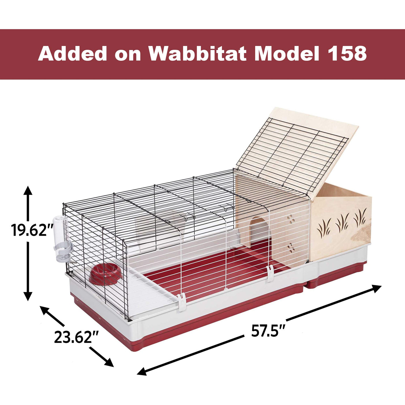 Rabbit Hutch Extension | Constructed of untreated natural wood, this Rabbit Hutch is an extension unit only; fits Rabbit Cage model's 158 & 158XL | Rabbit Hutch measures 24L x 18W x 19.25H inches | Provides a safe haven & retreat for your Rabbit, Guinea Pig or Chinchilla | Wood Rabbit Hutch ext. includes a 5.5-inch deep plastic pan to contain rabbit bedding & prevents rabbit's urine from soaking into wood | Wood Hutch also includes top door for easy pet access | Wooden Rabbit Hutch attaches quickly & easily to the Rabbit Cage (model 158 * 158XL) w/ no tools required for assembly