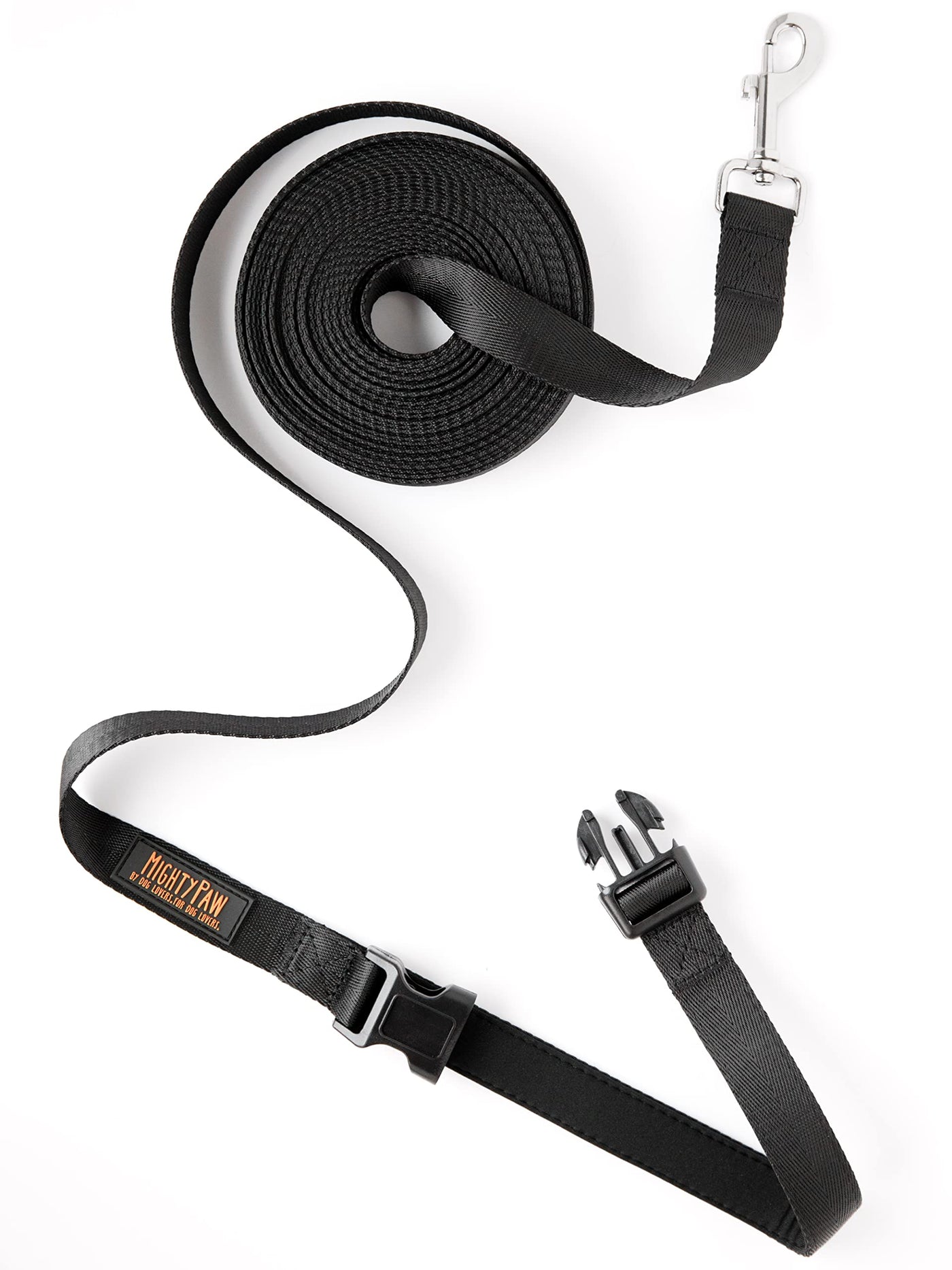 Mighty Paw Long Dog Leash - Premium Leash For Off-Leash Recall Training - Includes Buckled Padded Handle - Suitable For Yard - Pet Yard Leash - Camping And Dog Lead Training - (30 Feet, Black)