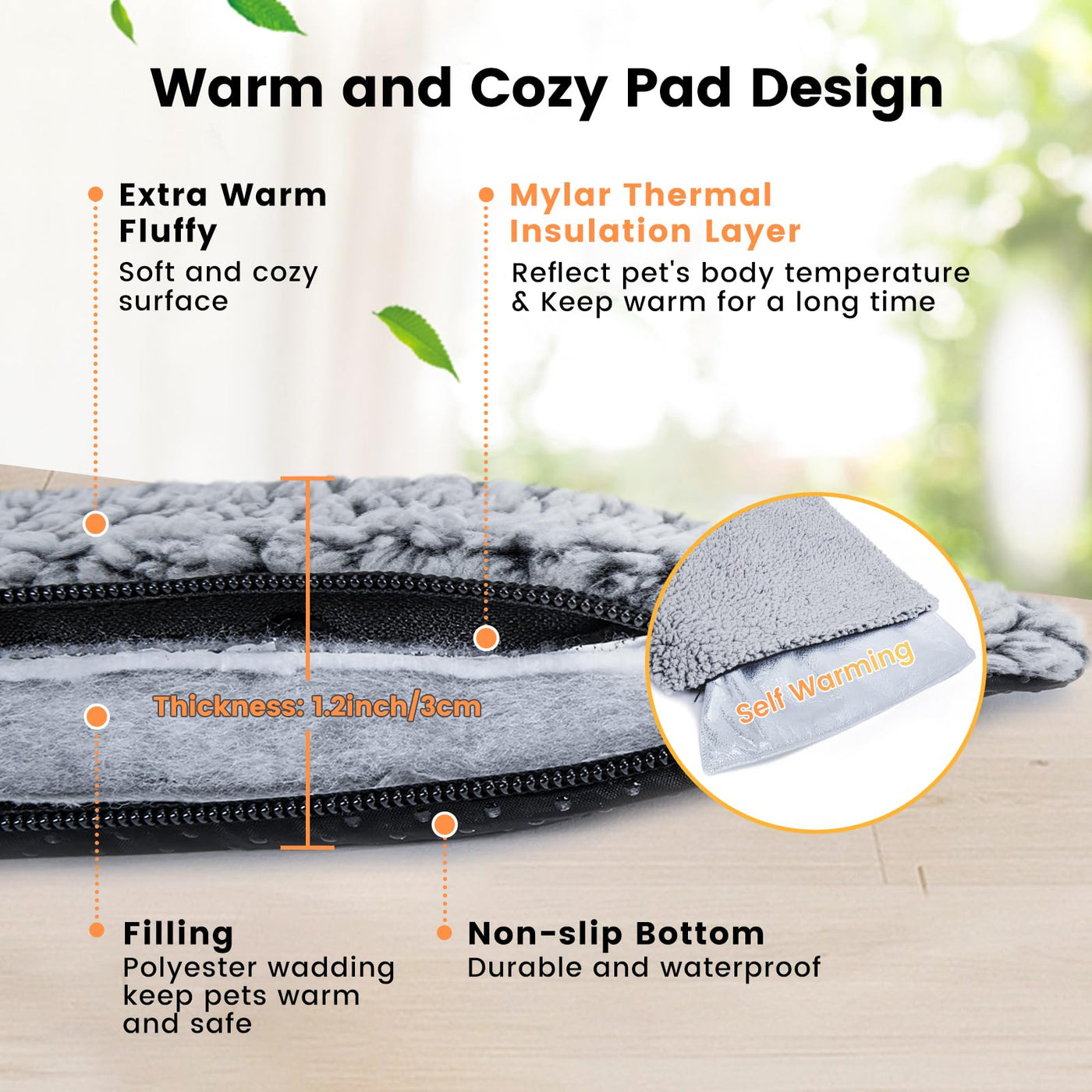 Self Heating Warming Heated Thermal Dog Cat Cats Pet Puppy Bed Mat Pad Pillow For Indoor Outdoor Outside Sleeping Large Medium S M Xl Xlarge Washable Size House Cage Crate Flat Blanket Bedding Gray Brown Blue Feral Rectangle Shepherd Shaggy Morapets Breed