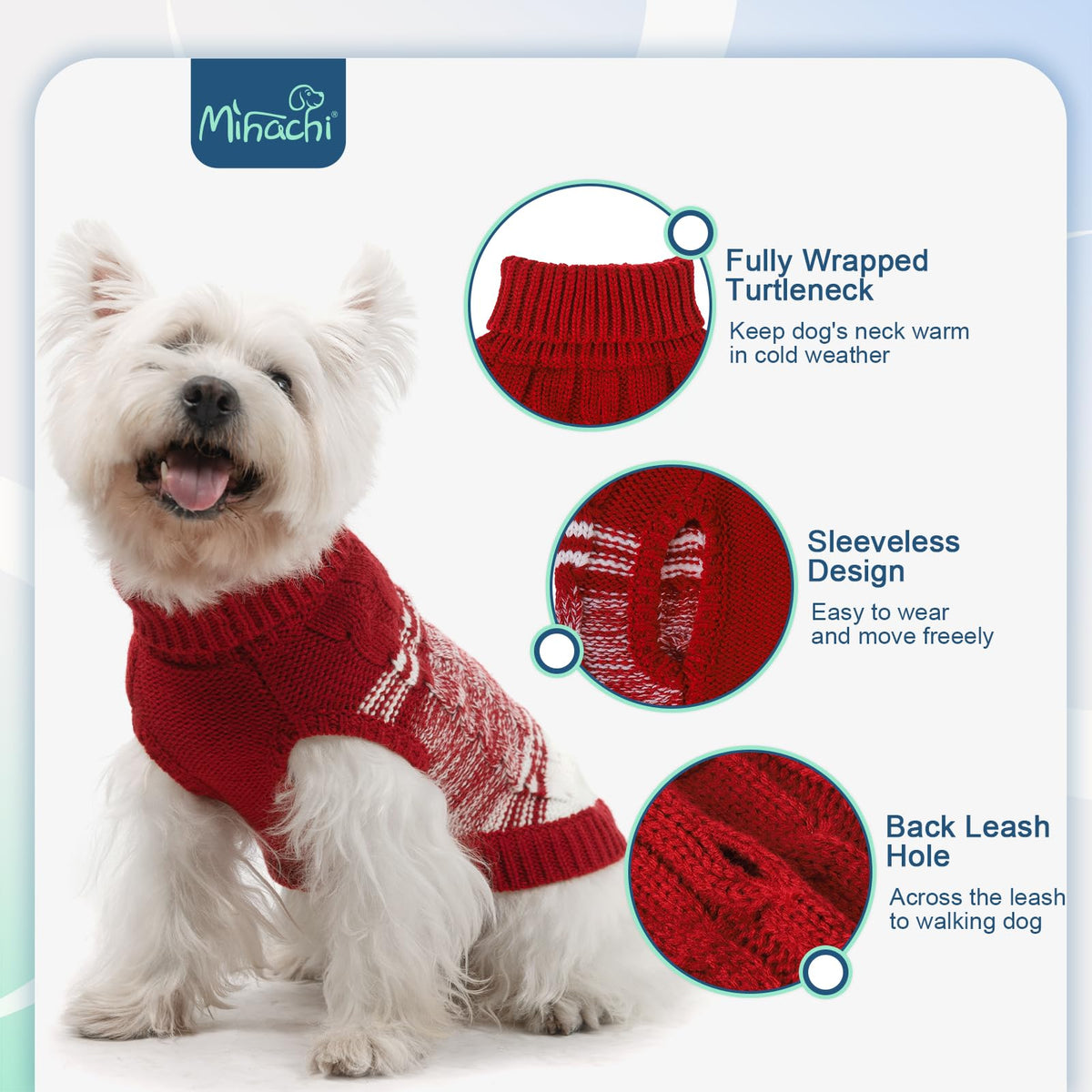 Mihachi Soft Warm Dog Sweater For Small Dogs & Cats - Turtleneck Knitted Pullover With Leash Hole, Red Xs