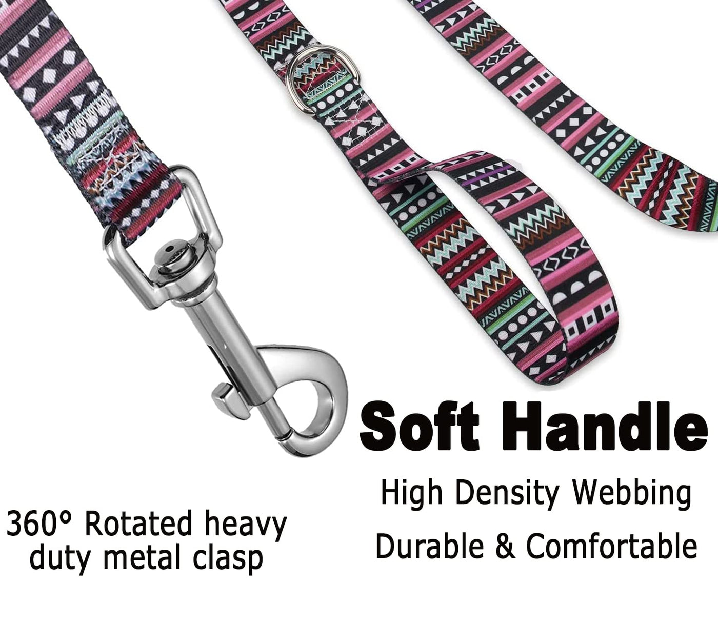 Mihqy Dog Collar and Leash Set with Bohemia Floral Tribal Geometric Patterns - Soft Ethnic Style Collar Adjustable for Small Medium Large Dogs(Bohemian Purple Set XS)
