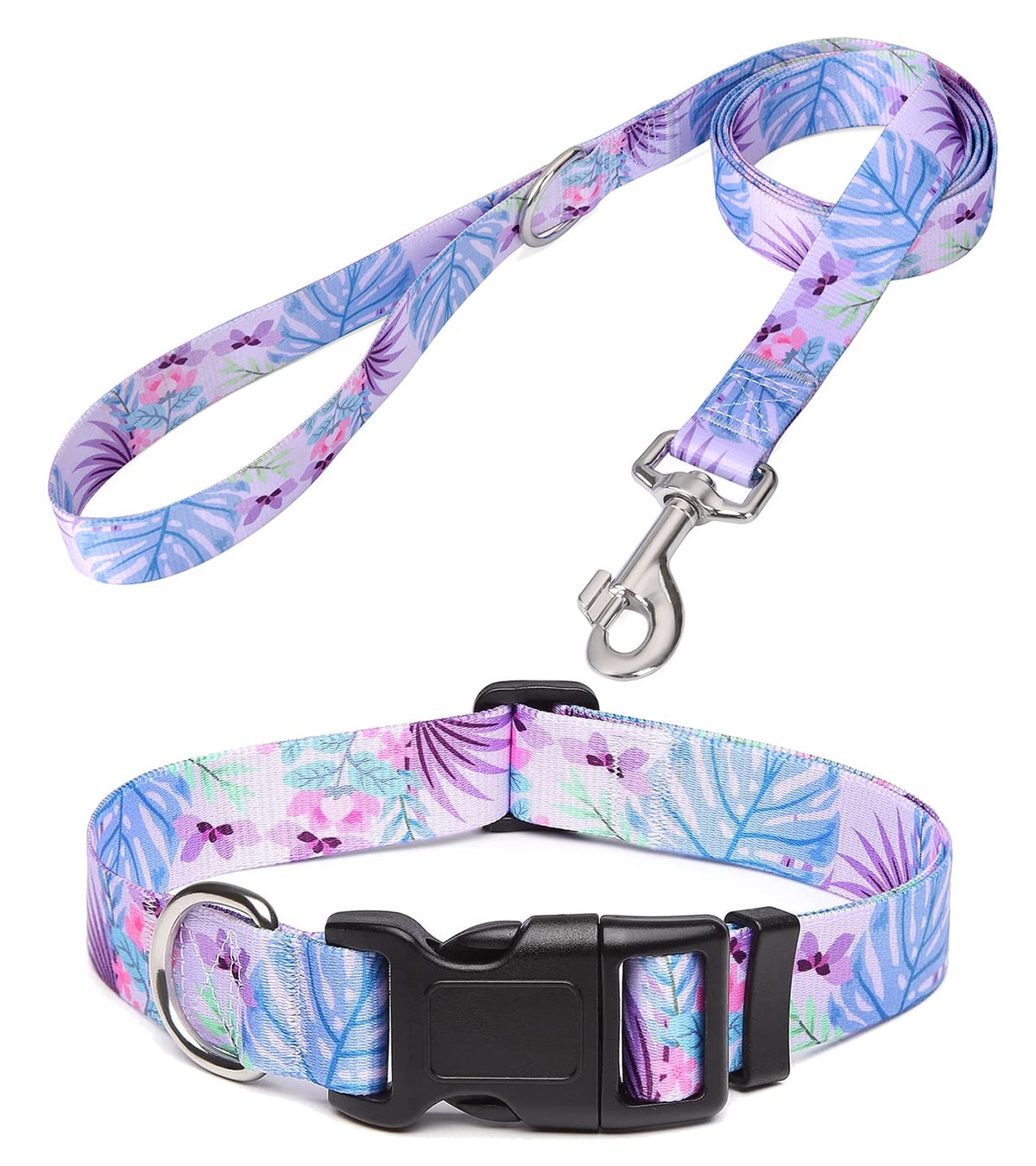 Q: What makes the Mihqy Dog Collar and Leash Set unique?A: The Mihqy Dog Collar and Leash Set features a stylish bohemia floral tribal geometric pattern, combining fashion with functionality. Its durable design includes metal D-rings for secure leash attachment and a quick-release plastic buckle for easy on and off.