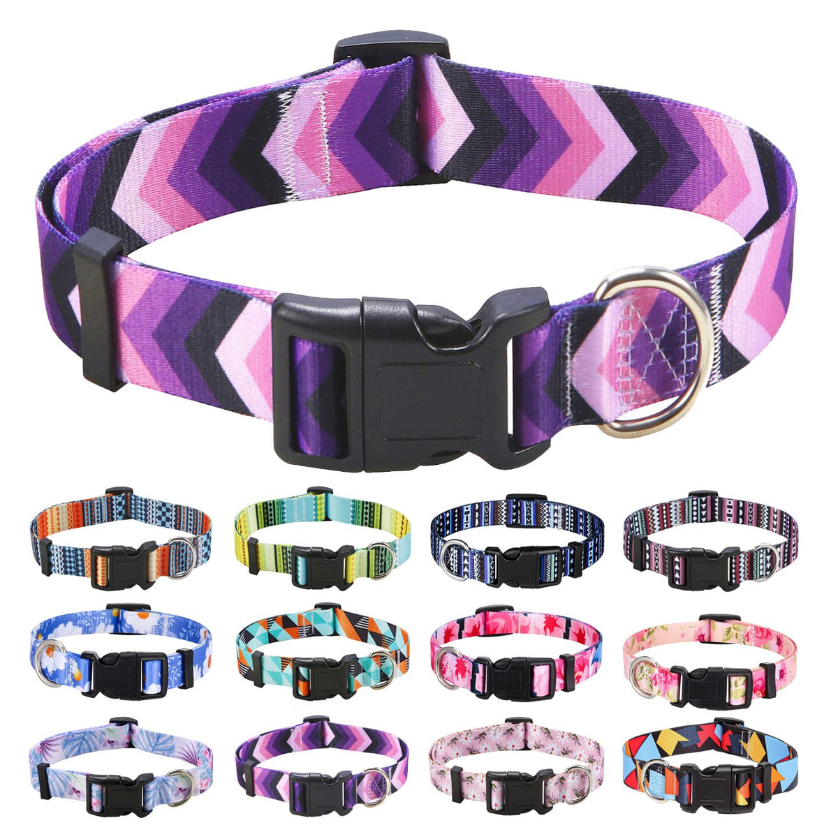 Mihqy Dog Collar Set with Bohemia Floral Tribal Geometric Patterns - Soft Ethnic Style Collar Adjustable for Small Medium Large Dogs(Purple Arrow XS)