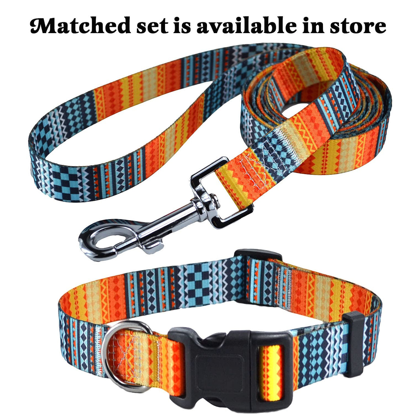 Q: Does the Mihqy Dog Collar come with a matching leash?A: Yes, the Mihqy Dog Collar is available with a matching leash featuring the same bohemia floral tribal geometric patterns. You can find it in our store for a coordinated look during walks.