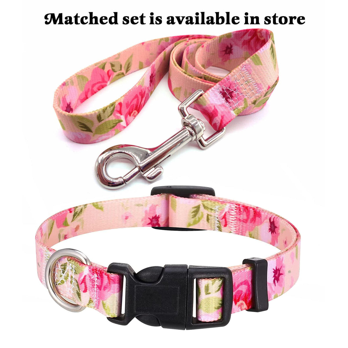 Mihqy Dog Collar with Bohemia Floral Tribal Geometric Patterns - Soft Ethnic Style Collar Adjustable for Small Medium Large Dogs (Pink Rose XS)