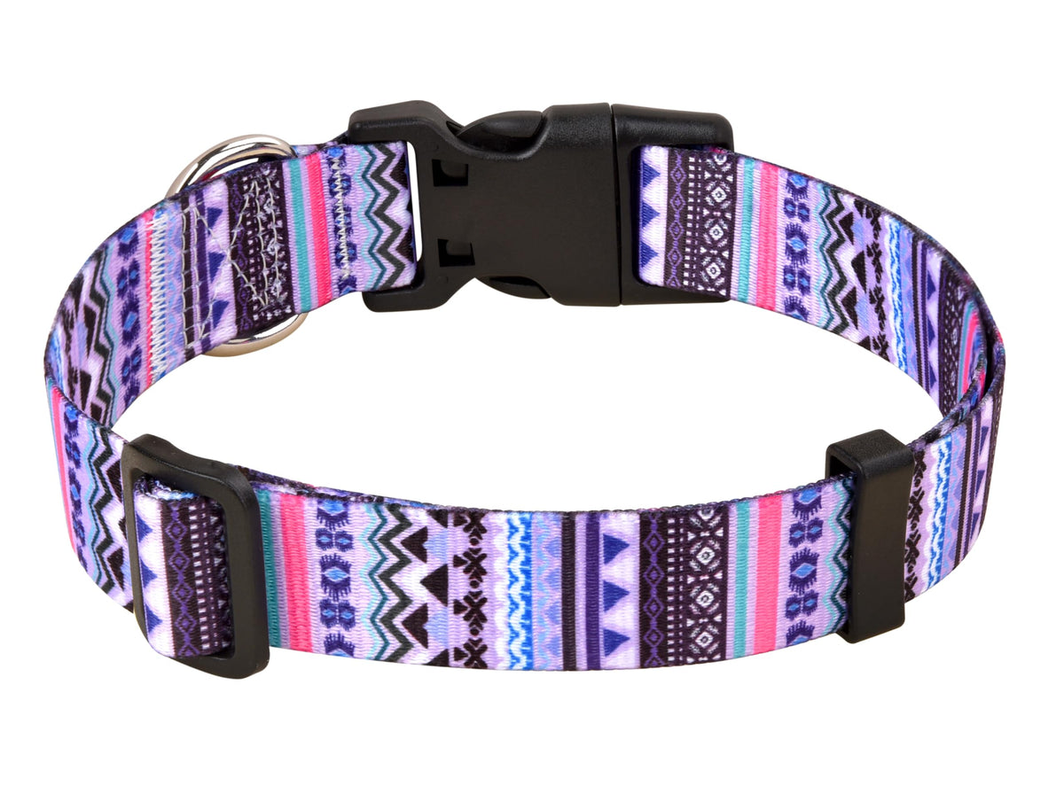 Mihqy Dog Collar with Bohemia Floral Tribal Geometric Patterns - Soft Ethnic Style Collar Adjustable for Small Medium Large Dogs(Purple Bohemia M)