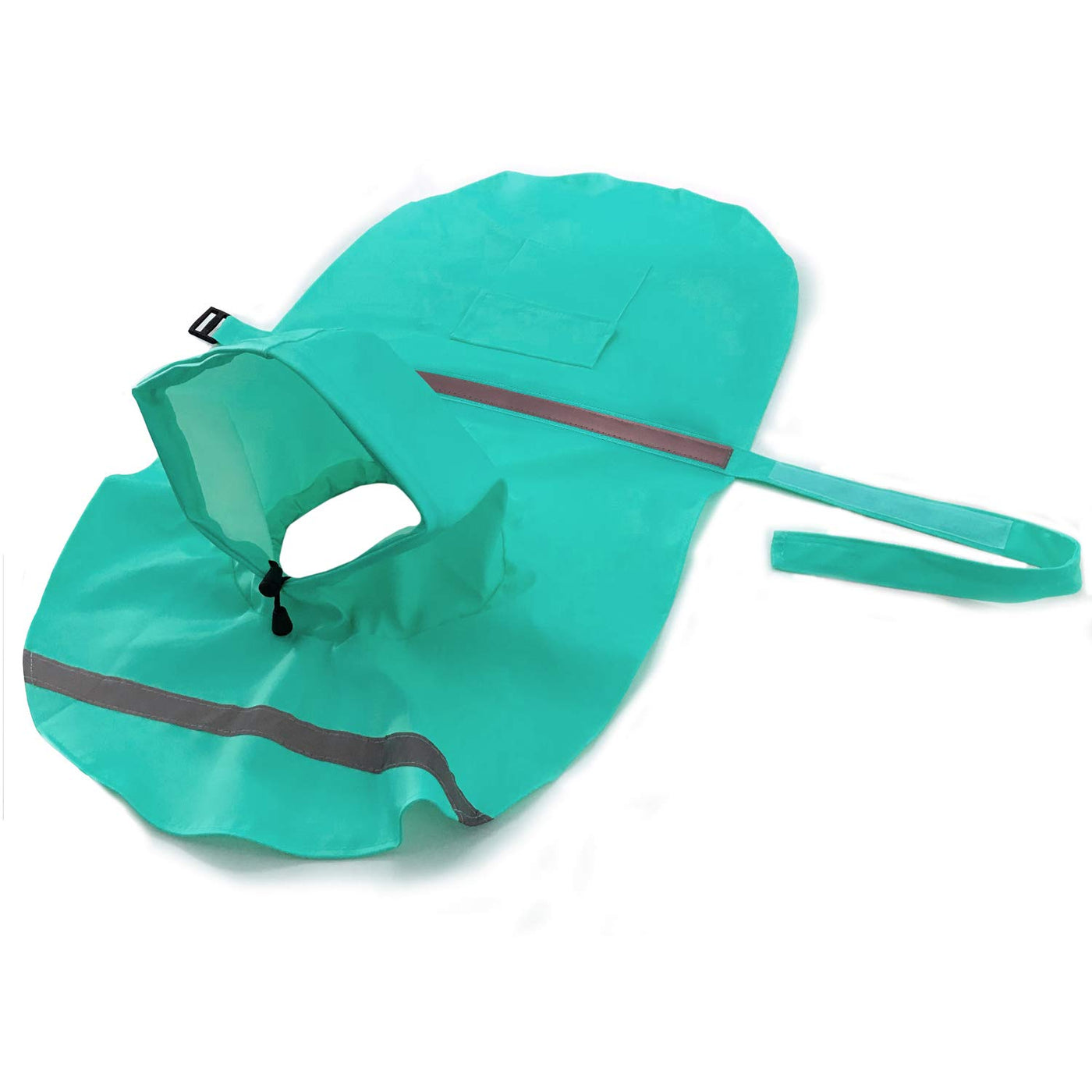 Mikayoo Large Dog Raincoat Adjustable Pet Waterproof Clothes Lightweight Rain Jacket Poncho Hoodies with Strip Reflective(Lake B