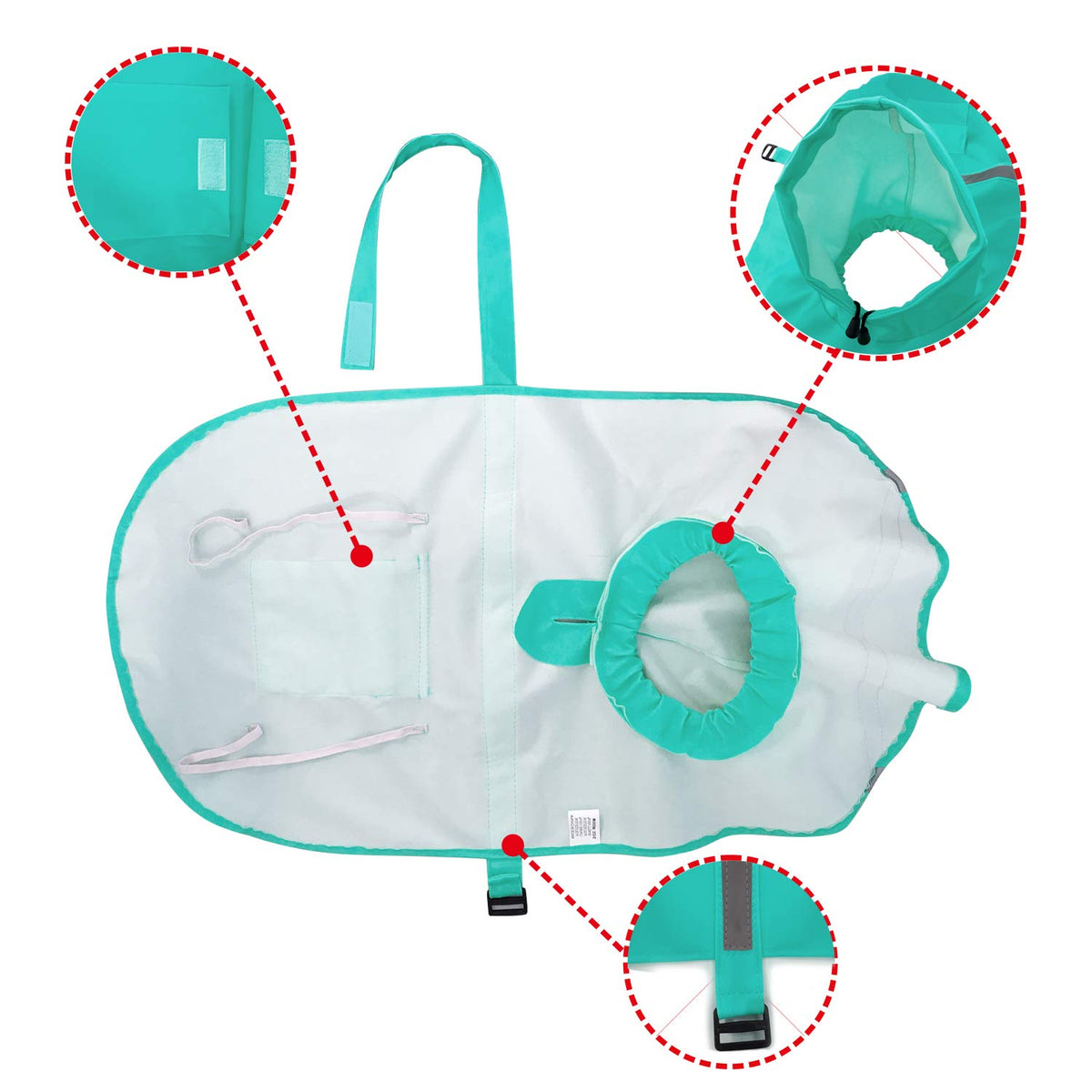 Features1.a drawstring hood, a handy back pocket with hook and loop flap closure.2.High qulity 100% polyester material with a high waterproof high breathable qualities, protect your pet with the pets packable rain poncho.3.Unique reflective type on back ensure your pets can be seen at night/in the dark.4.Size Chart: Size M: Back length 15.7, Chest circumference 25.6-27.6,Neck circumference 13.6-17.3;size L Back length 19.3, Chest circumference 30.3-31.9,Neck circumference 14.8-19.8;size XL Back length 23.3, Chest circumference 35-38.1,Neck circumference 17.3-24.7;size XXL Back length 28.8, Chest circumference 38.2-41.3,Neck circumference 18.5-27.2.