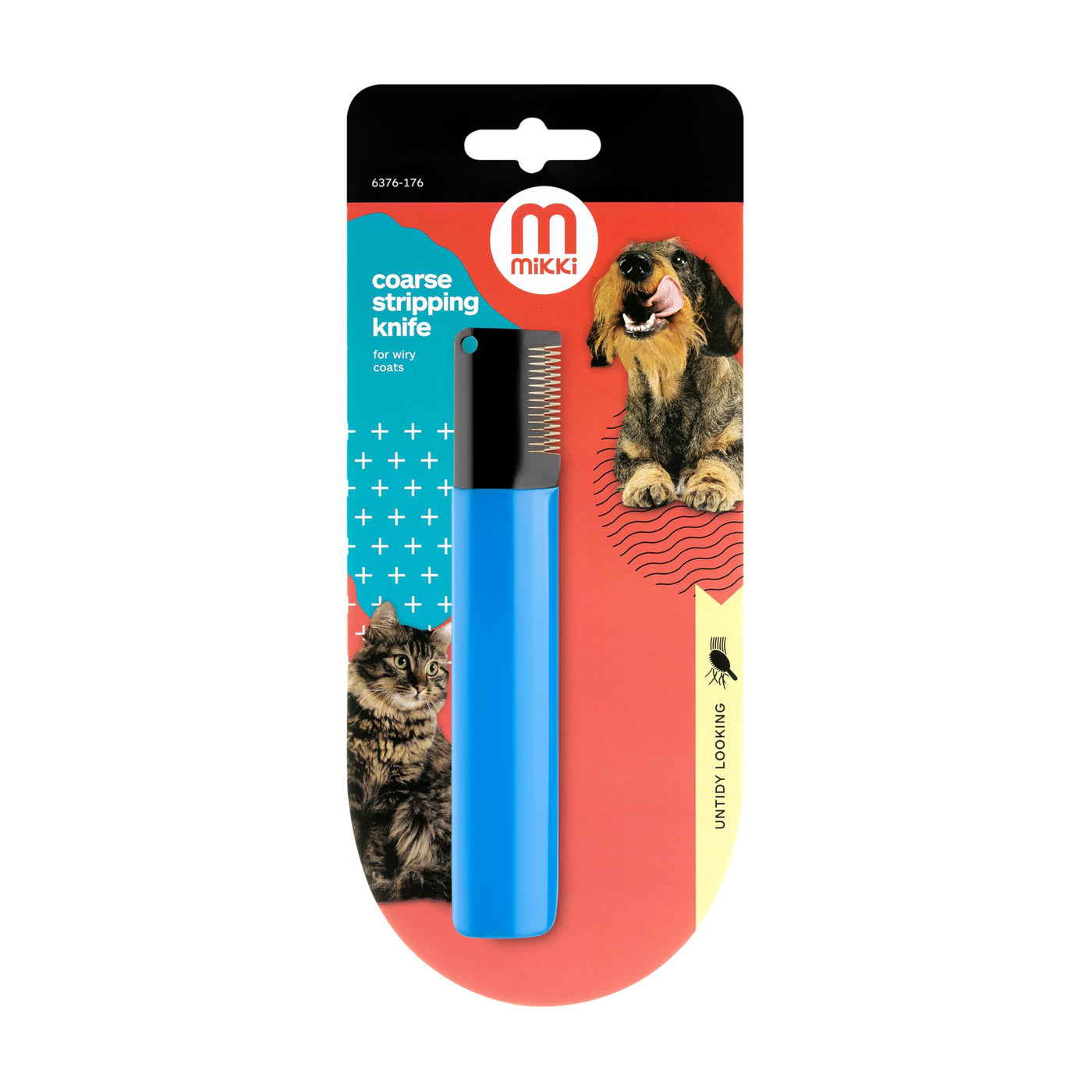 Product Descriptionmikki Stripping Knife For Coarse Coats Is Made From The Finest Quality, Heat Treated Stainless Steel, Making Them Anti-Rust And Durable. The Cutting Edge Is In Between The Teeth, And The Teeth Tips Are Blunted To Ensure Your Thumbs Are Kept Safe. This Stripping Knife Is Ideal For Coarse Coated Pets And Removes Old Top Coat To Keep Your Pet Looking Tidy And Well Groomed. Follow The Directions For Use Carefully. Mikki Stripping Knife For Fine Coats Is Also Available.Set Contains:1 X Mikki Stripping Knife For Coarse Coats