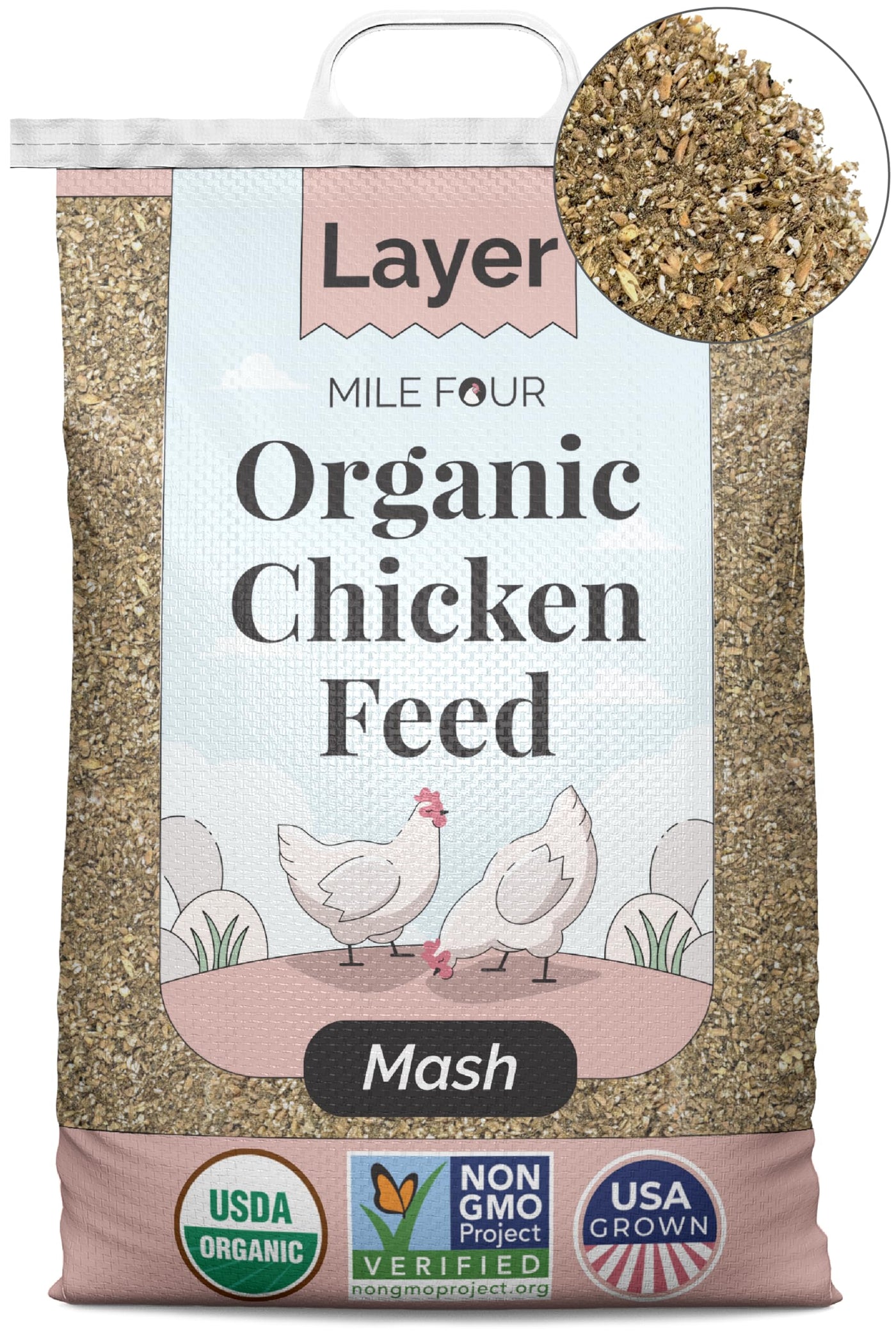 Mile Four Layer Organic Chicken Feed | 16% Protein | Mash | Certified Organic, Non-GMO, Corn-Free, Soy-Free, Non-Medicated, US G