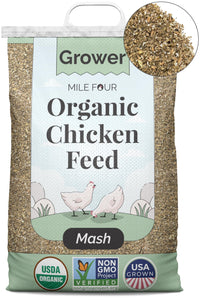 Mile Four Organic Chicken Feed - Grower Mash, Non-GMO, USA Grown, 18% Protein, Corn-Free, Soy-Free, Non-Medicated Feed for Chick