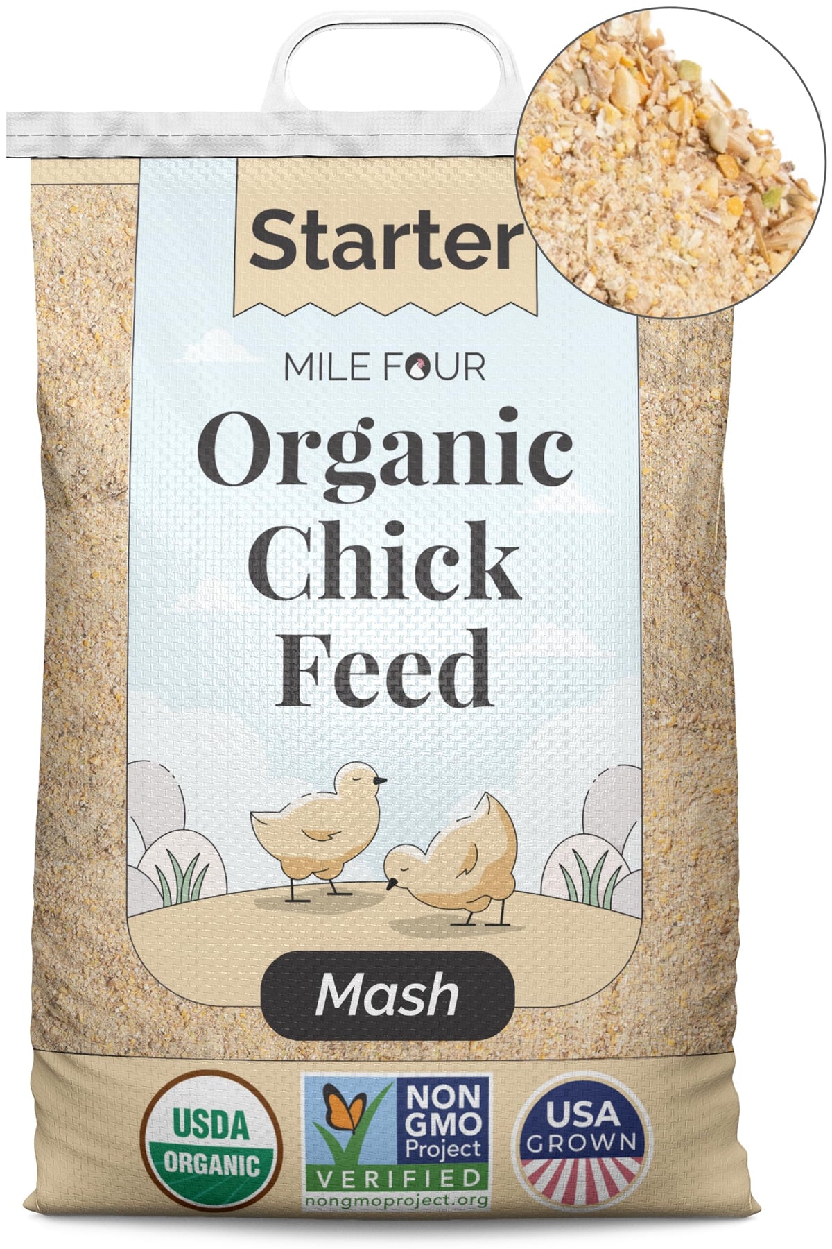 Mile Four Organic Chicken Feed - Starter Chick Mash, Non-GMO, USA Grown, 21% Protein, Corn-Free, Soy-Free, Non-Medicated Chick F