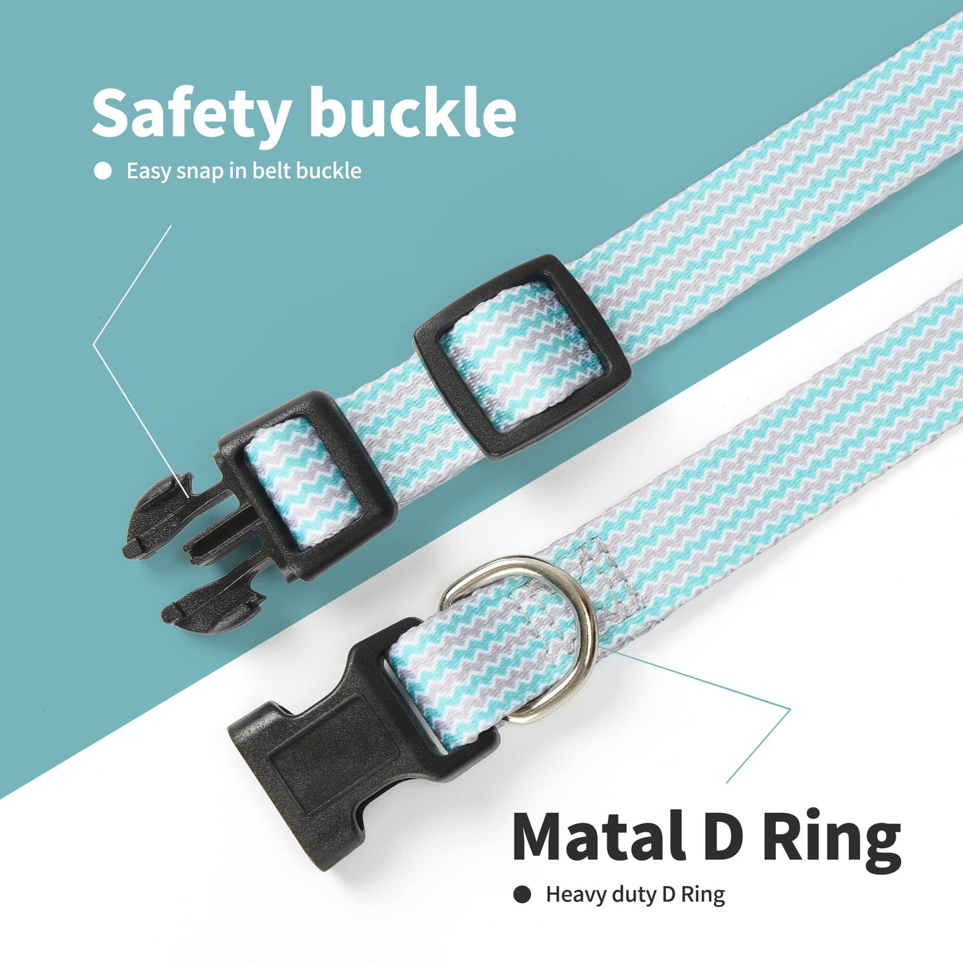 Mile High Life Dog Collar | Cute Puppy Collars | Lightweight Girl Dog Collar | Soft Boy Dog Collars | W Geometric Plaid Wave Line Pattern (Green Wave, Large)