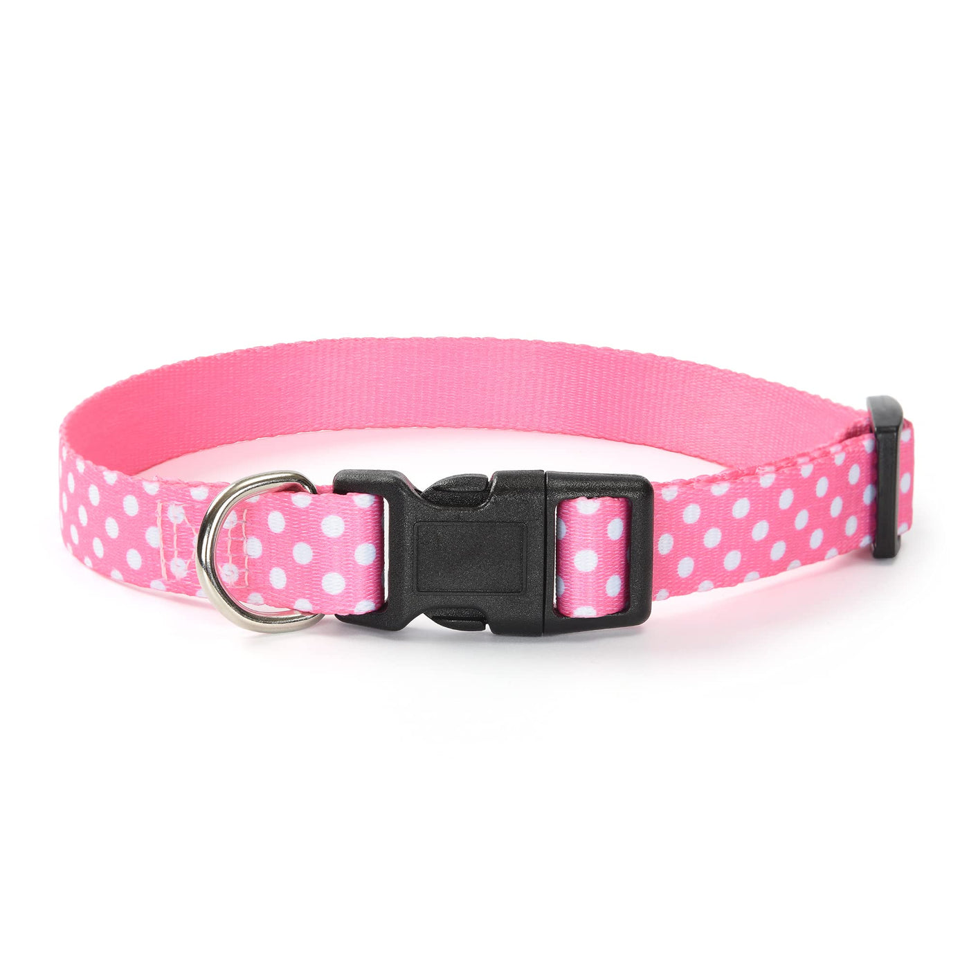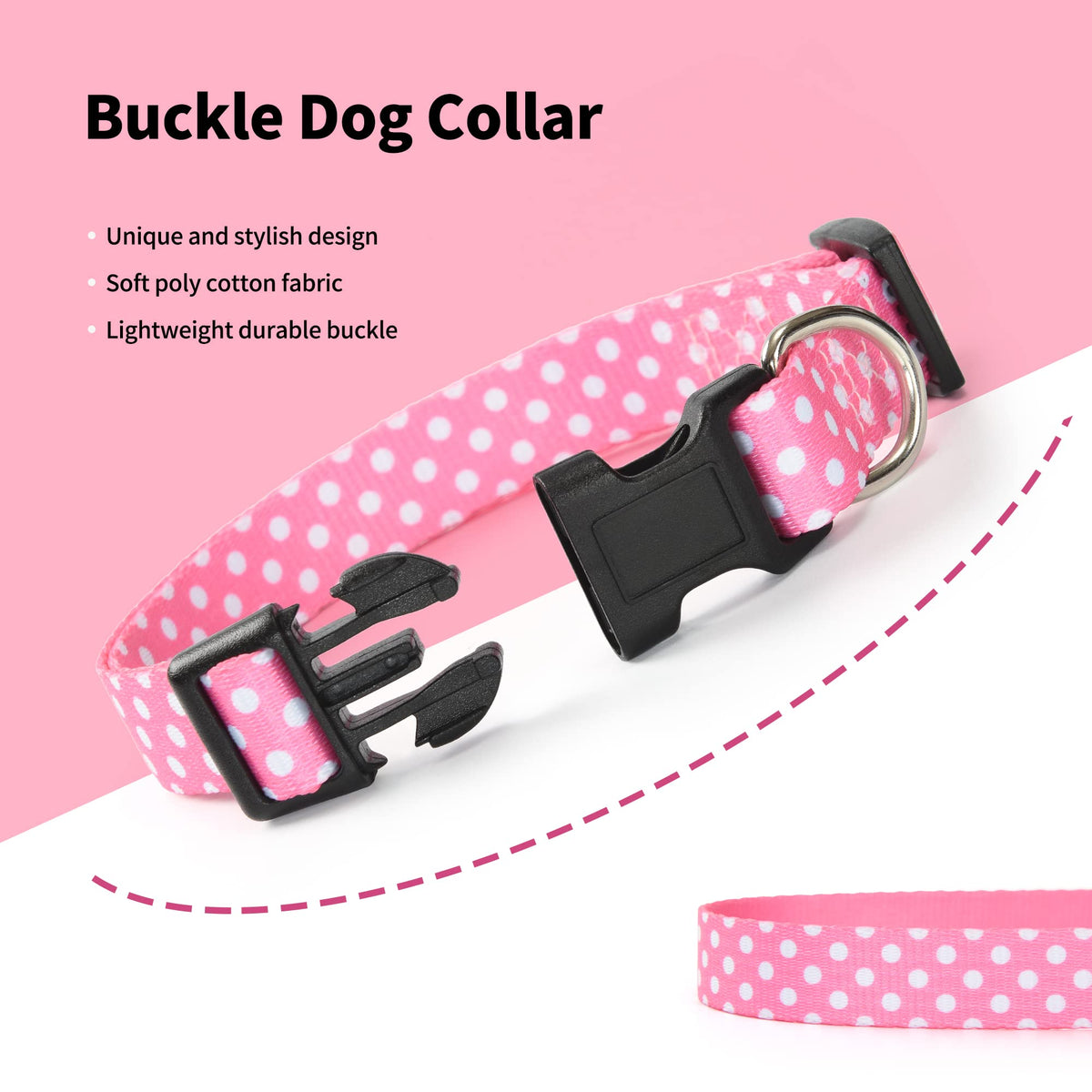 Mile High Life Dog Collar | Cute Puppy Collars | Lightweight Girl Dog Collar | Soft Boy Dog Collars | W Geometric Plaid Wave Line Pattern (Pink Dots, Medium)