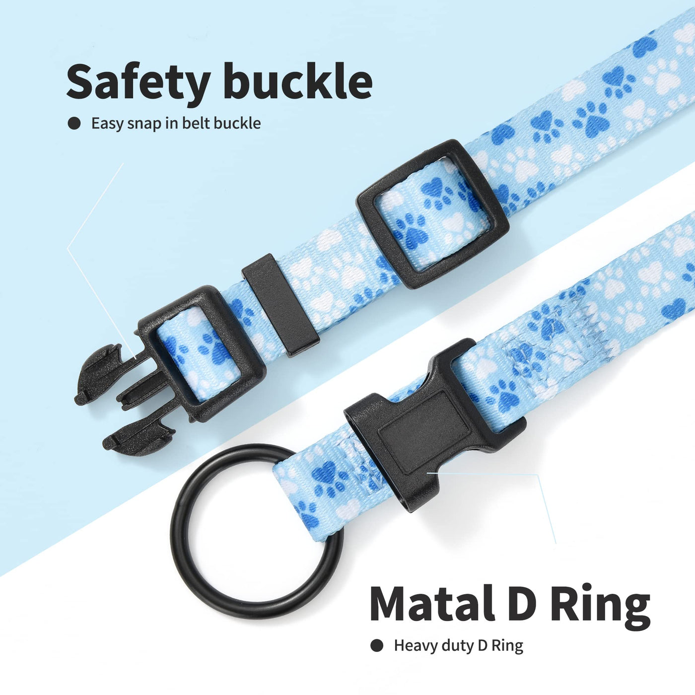 Mile High Life Dog Collar | Nylon Puppy Collars W Cute Patterns | Lightweight Girl Dog Collar | Boy Dog Collar For Small/Medium/Large Dogs (Blue Foot, Small)