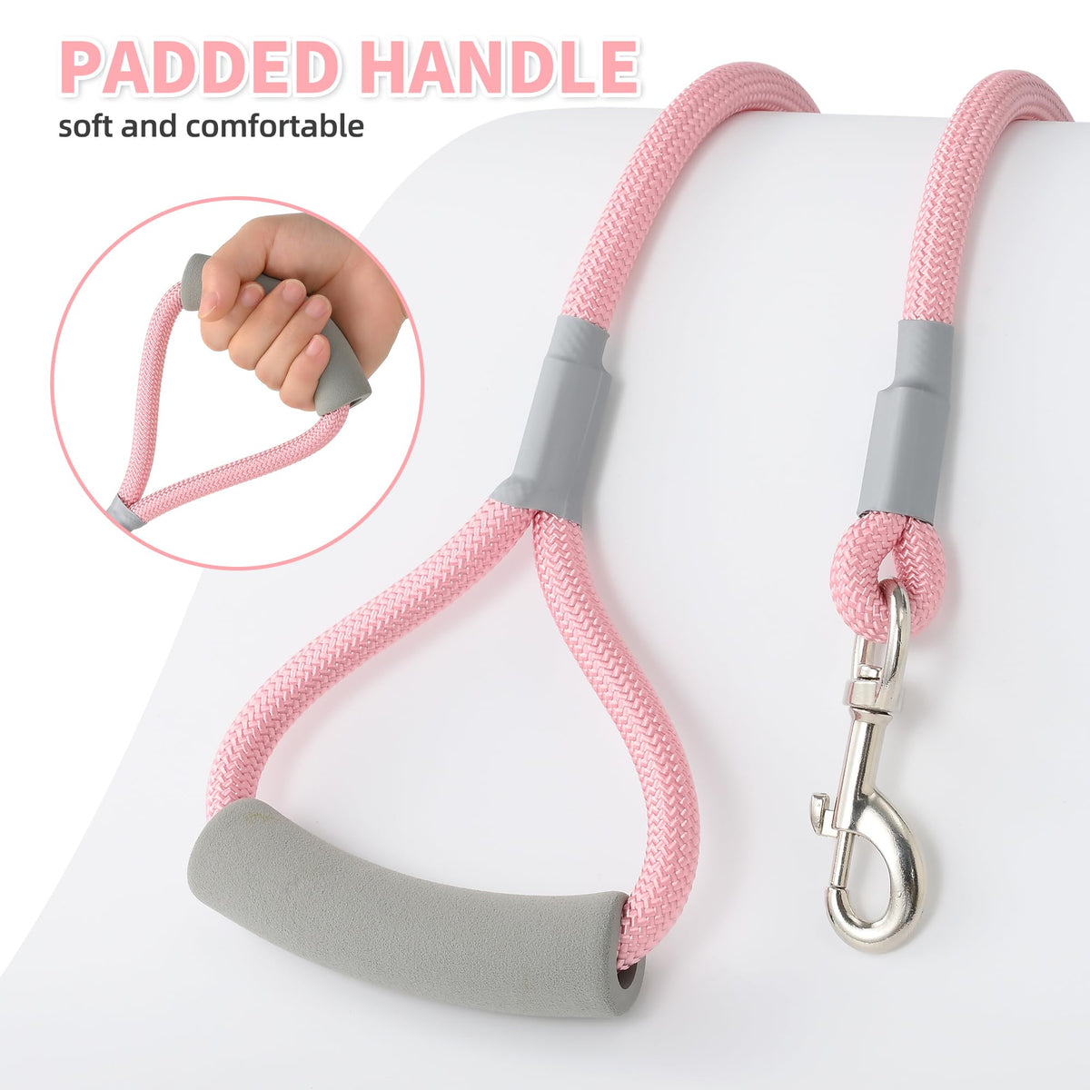 Mile High Life Dog Leash, With Comfortable Padded Handle, Pink Nylon Rope Leash With Steel Tips, Heavy Duty 6 Feet Pet Leashes (