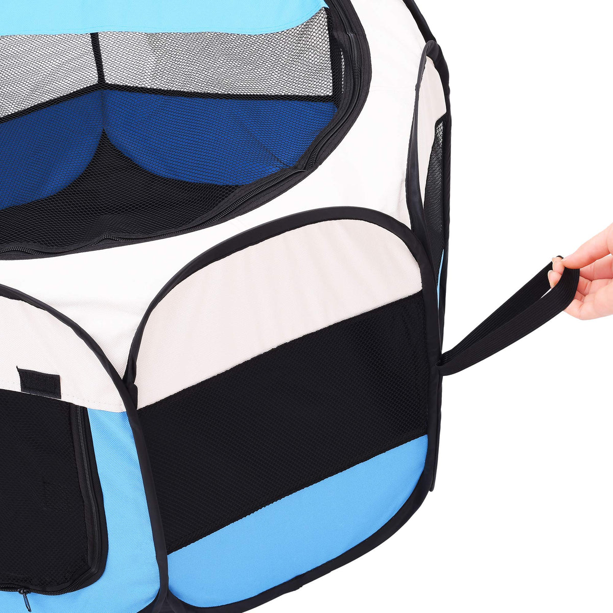 Q: Does the playpen come with a carrying case?A: Yes, the portable pet playpen comes with a convenient carrying case, making it easy to transport and store.