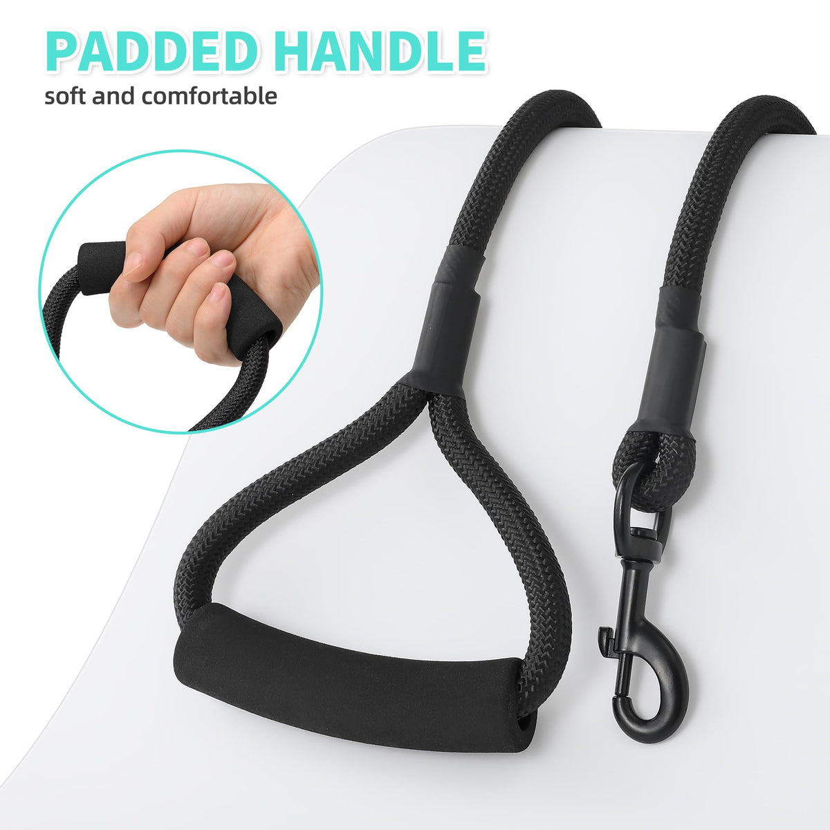 Mile High Life Long Dog Leash, 10 Feet With Comfortable Padded Handle, Black Nylon Rope Leash With Steel Tips, Heavy Duty Pet Le