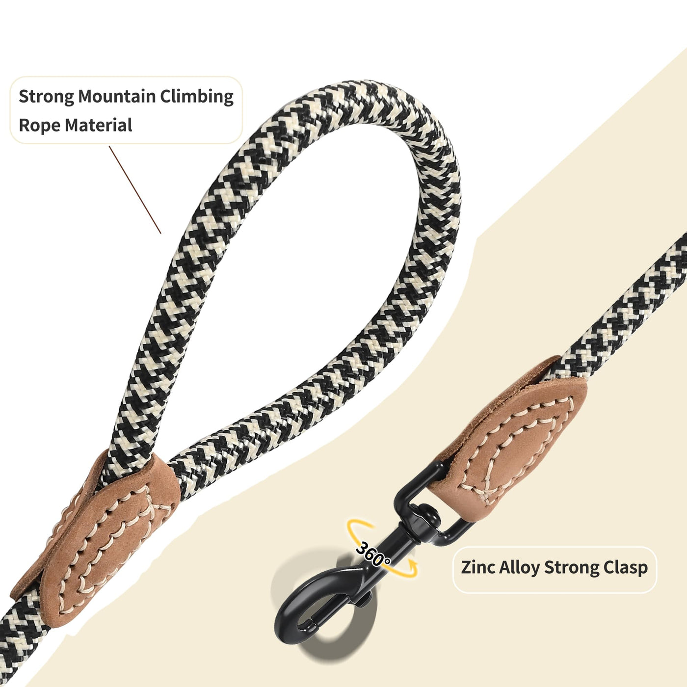 DURABLE: Strong leash made of durable mountain climbing rope heavy duty clasp with classic leather connection making this leash a reliable choice for all your outdoor activities.