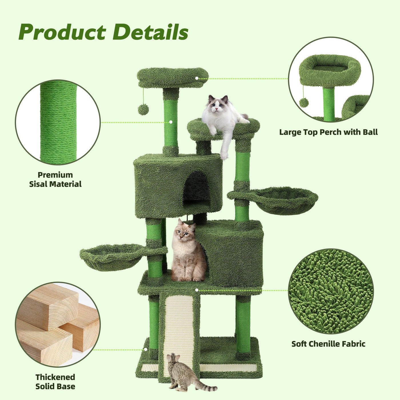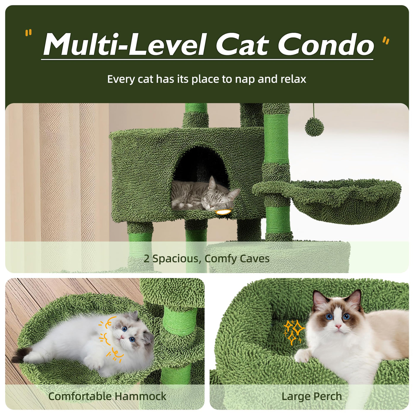Mile High Life | Multi-Level Cat Tree Condo 58 For Large Cats | Hammock And Sisal Covered Scratching Post Tree For Kittens | T