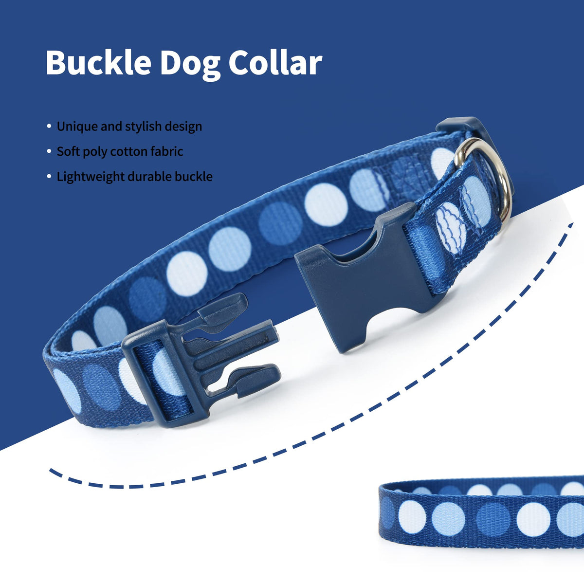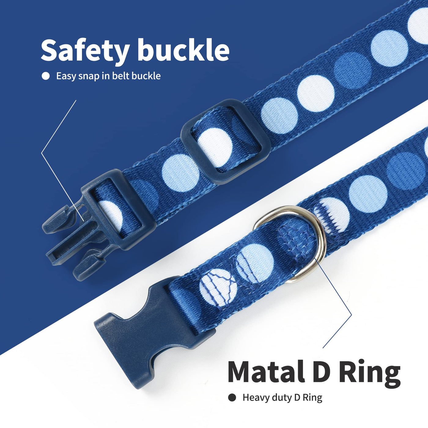 Mile High Life Nylon Puppy Dog Collar W Cute Patterns Lightweight Girl Boy Collar For Small/Medium/Large Dogs (A-Blue Dots, Larg