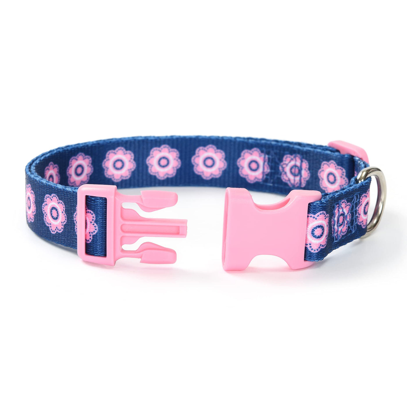 Mile High Life Nylon Puppy Dog Collar W Cute Patterns Lightweight Girl Boy Collar For Small/Medium/Large Dogs (Pink Flower, Larg