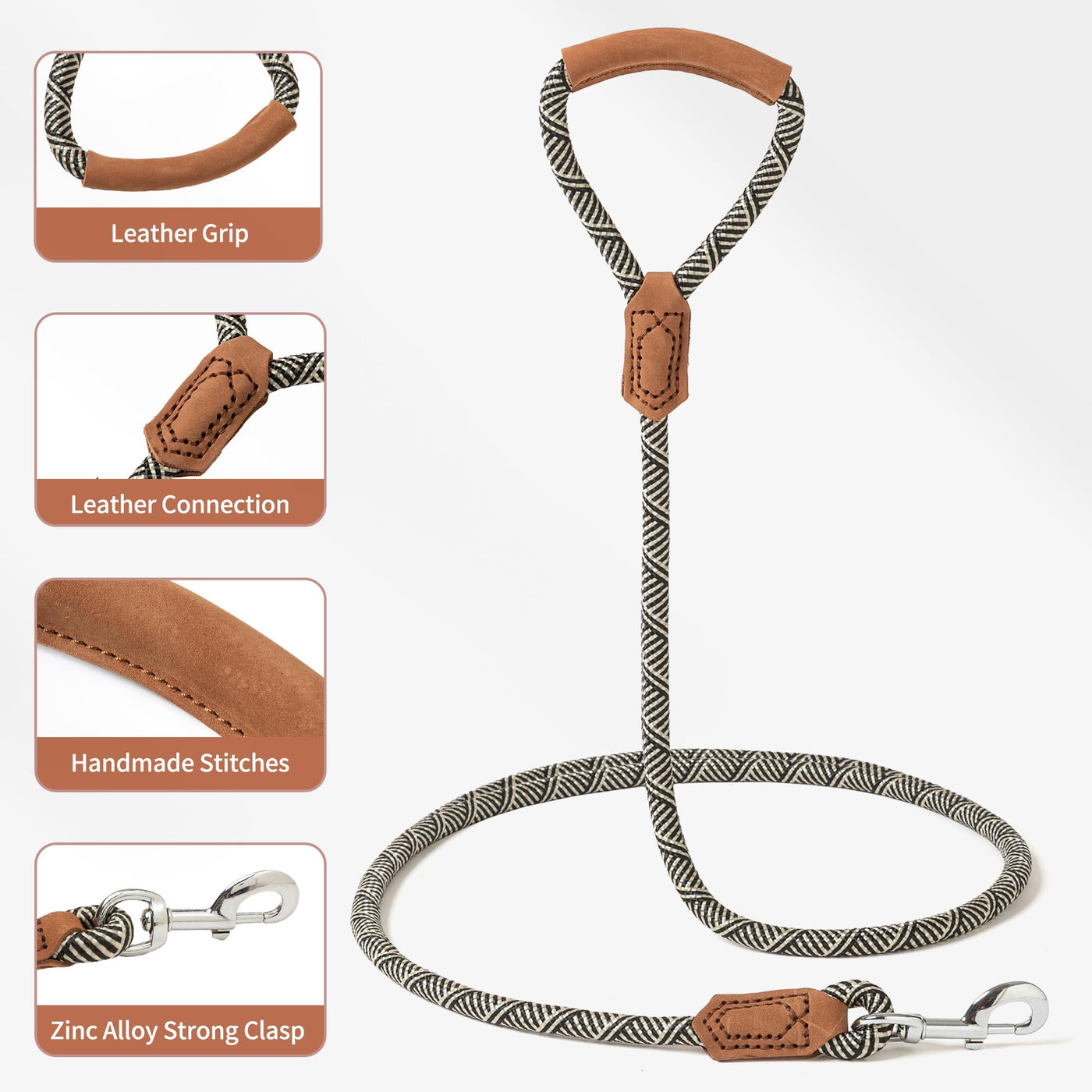 Mile High Life | Premium Leather Handle Dog Leash | Strong Rope Leash | Zinc Alloy Strong Clasp | Small Medium Large Dogs | 4/5/
