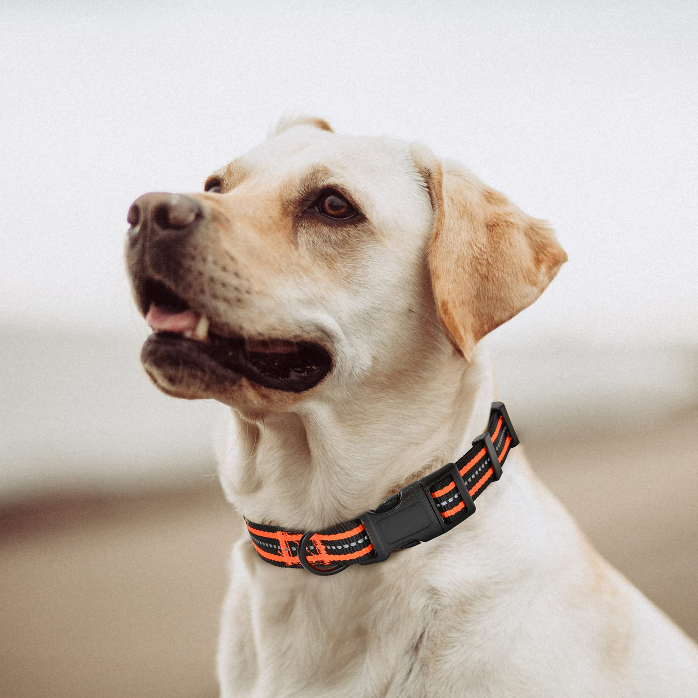 Mile High Life Reflective Dog Collar | Nylon Pet Collars Wiith Buckle | Light Weight Puppy Collars | Orange Dog Collars For Medi
