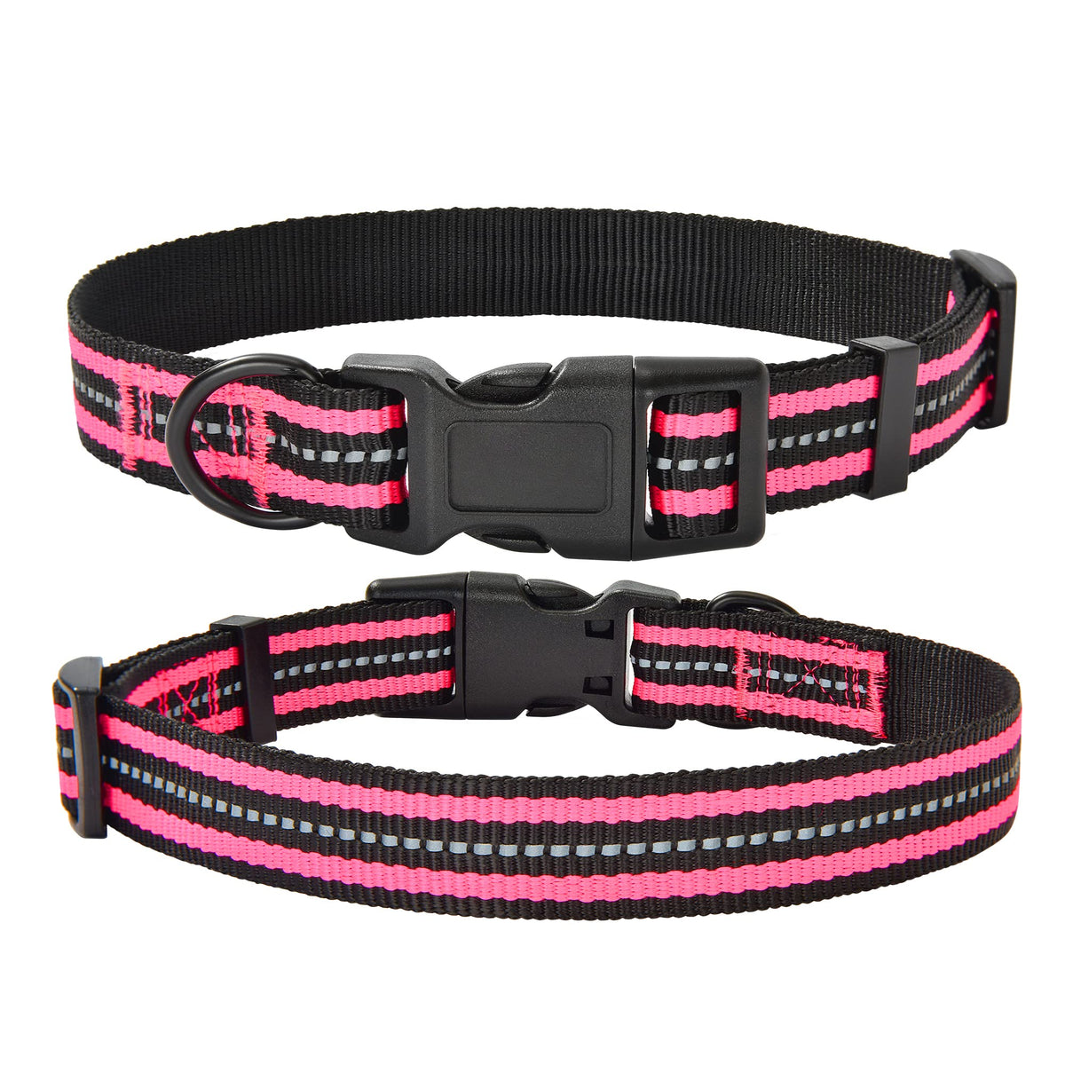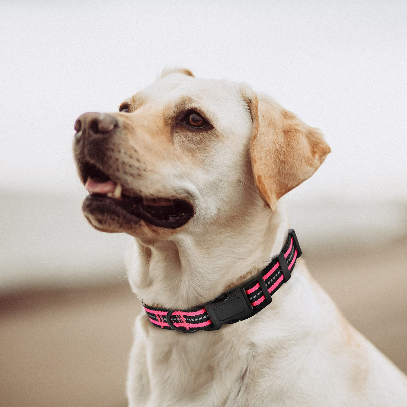 Mile High Life Reflective Dog Collar | Nylon Pet Collars Wiith Buckle | Light Weight Puppy Collars | Pink Dog Collars For Large