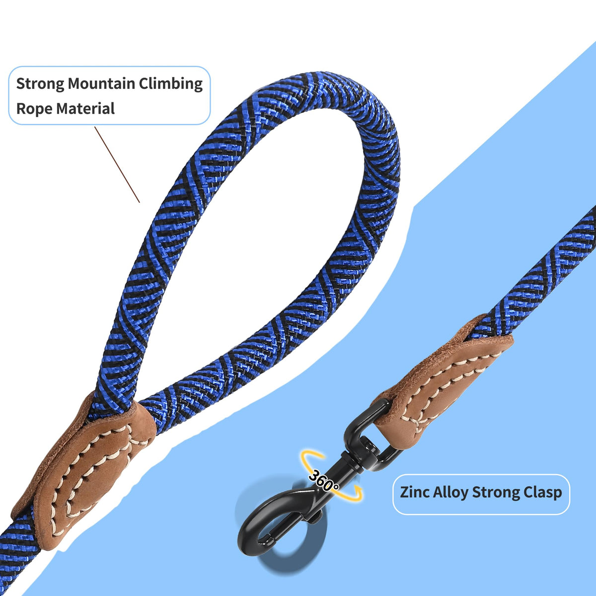 Mile High Life Rope Leash With Genuine Leather Connection, 6 Ft/5 Ft/4 Ft, Heavy Duty Leash For Medium & Large Dogs (Blue, 60 In