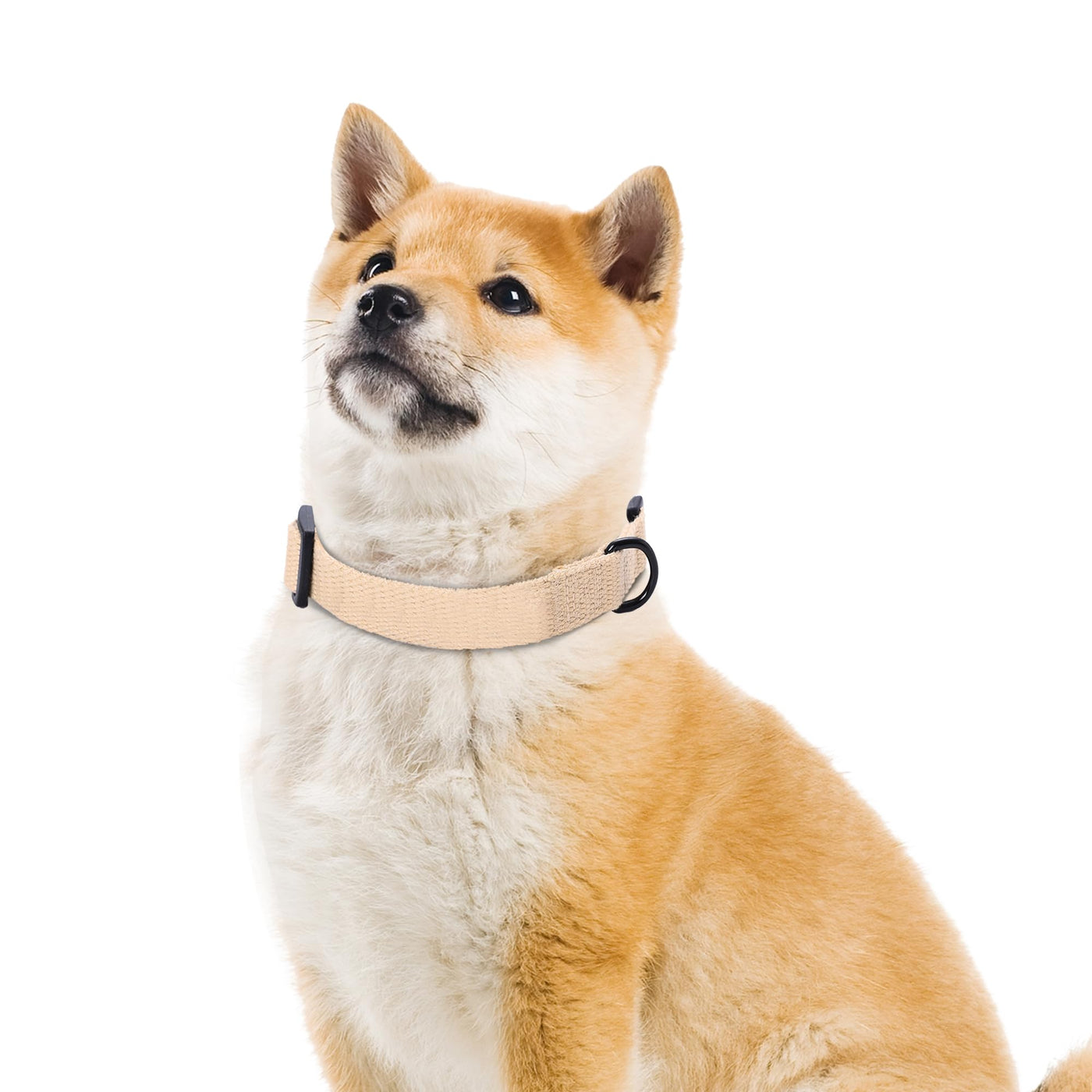 Mile High Life Soft & Strong Poly Cotton Adjustable Dog Collar With Quick Release Buckle For Small To Large Dogs(Khaki, Small Ne