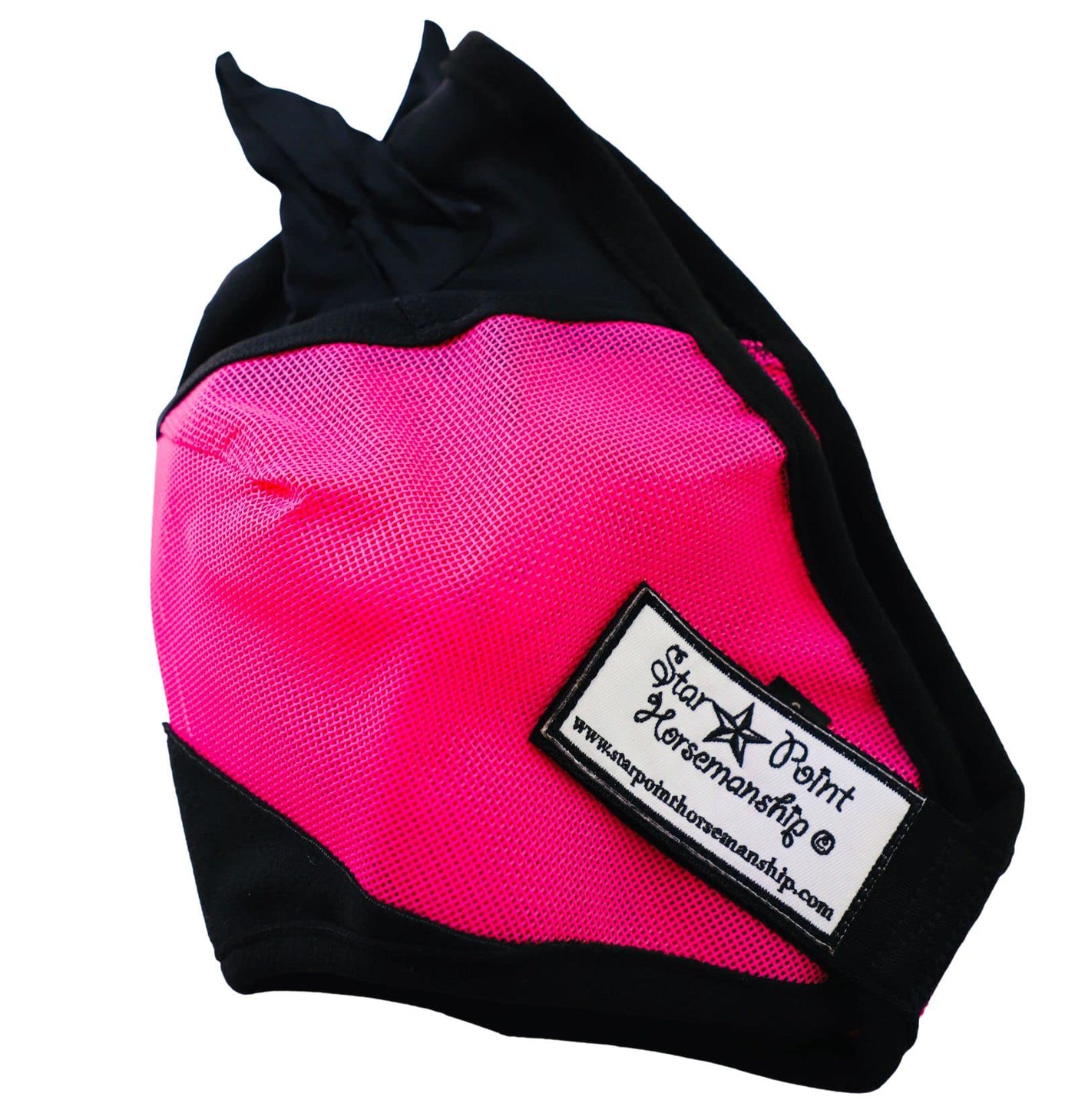Introducing Star Point Horsemanship Mini & Pony Fly Masks, designed for effortless fitting on your Mini and Pony. Heavy duty hook and loop to prevent horses rubbing the mask off in the pasture. Made in the USA, our exclusive size options ensure the perfect fit for your equine companion. Available in a range of stunning colors to complement your riding ensemble, its stylish crochet material and comforting ear fabric. Machine washable for easy care, simply shape and air dry naturally. SIZE CHART: Small fits 27-31, Medium fits 34-38 Mini, Large fits 39-45 Pony, XL fits 45-52 Pony and Average horse size fits 14-16 hands tall.