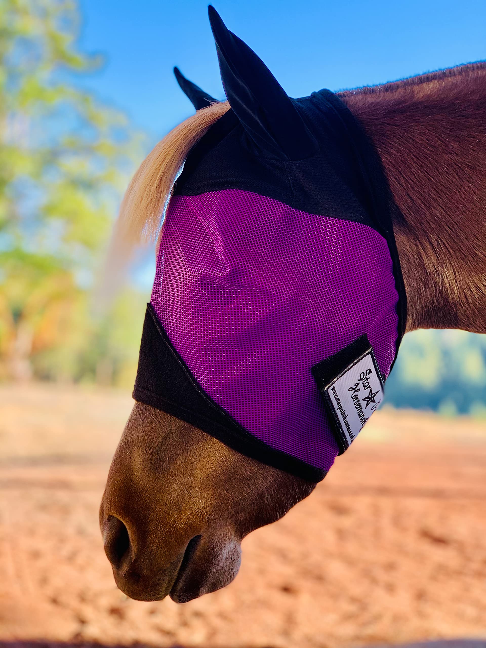 Miniature Horse Ear Cover Fly Mask (Small 28-32, Purple/Black)