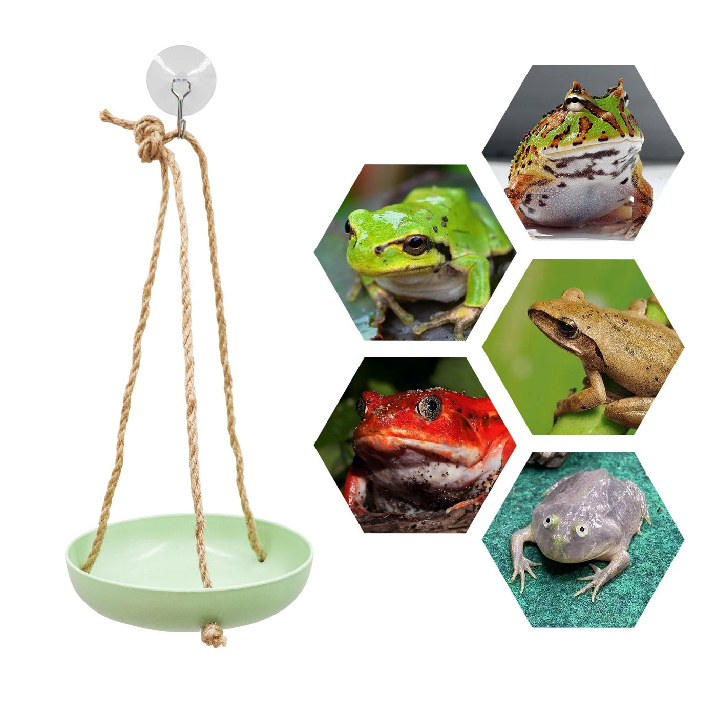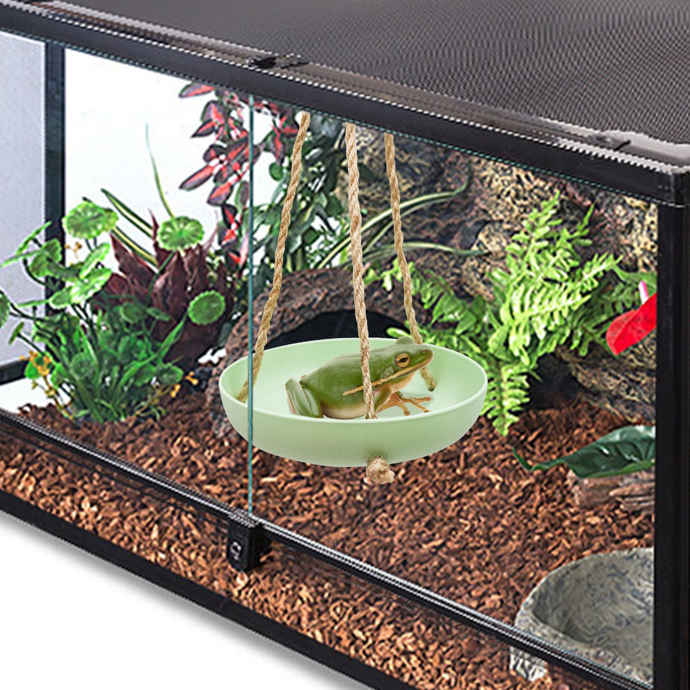 ?Frog Tank Accessories?: Enhance your frogs environment with this playful and functional frog swing toy. Perfect for tree frogs, African dwarf frogs, or any small amphibian, it adds both enrichment and comfort to your tank. ?Durable and Safe?: Made from high-quality, non-toxic plastic, this frog swing is safe for your amphibians and built to last. Its durable construction ensures it can withstand regular use in your terrarium without compromising your pets well-being. ?Easy to Install?: Setting up this swing is a breeze! Simply attach the suction cup to the glass or smooth surface of your frogs tank, and youre good to go. No need for tools or complicated setups. ?Frog Habitat Platform?: Designed with frogs in mind, this swing also doubles as a habitat platform, providing your pet with a comfortable space to rest, climb, and play. Its an ideal addition to your frogs habitat, helping to create a more dynamic and enjoyable environment. ?Wide Use?: This versatile swing is suitable for various amphibians, including tree frogs, African dwarf frogs, and toads. Its also a great addition to any reptile or amphibian-themed terrarium, offering both decorative and functional value.
