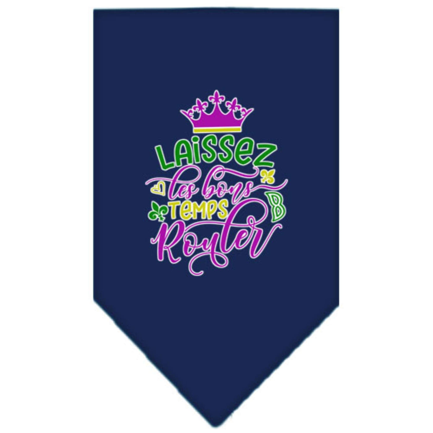 Mirage Pet Product Laissez Les Bons Temps Rouler Screen Print Mardi Gras Bandana Navy Blue Large