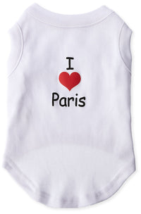 Mirage Pet Products 12-Inch I Love Paris Screen Print Shirts for Pets, Medium, White