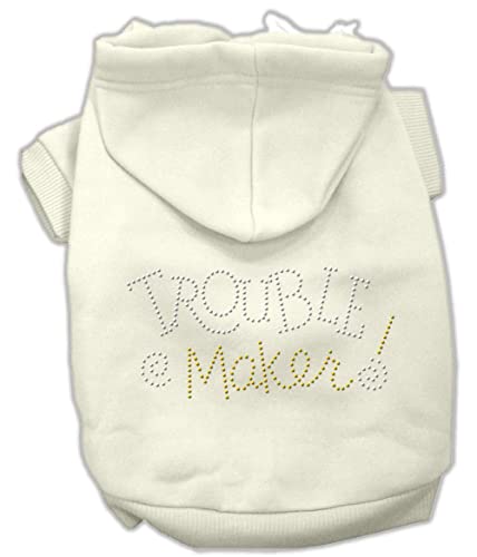 Q: What sizes are available for the Mirage Pet Products Trouble Maker Rhinestone Hoodie?A: The Mirage Pet Products Trouble Maker Rhinestone Hoodie is available in X-Large size, which fits a pet weighing around 16 pounds.