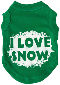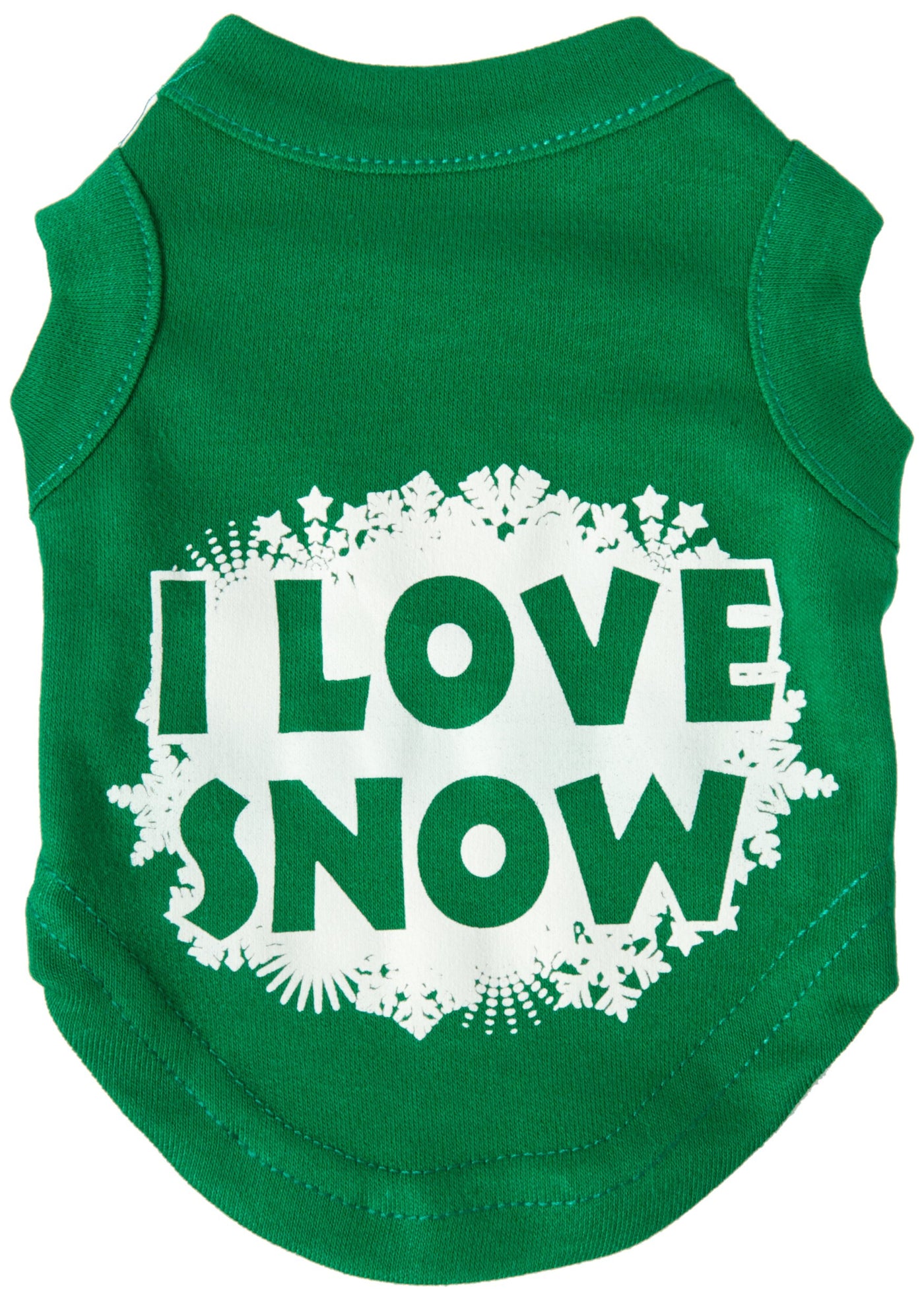 Mirage Pet Products 8-Inch I Love Snow Screen Print Shirts for Pets, X-Small, Emerald Green