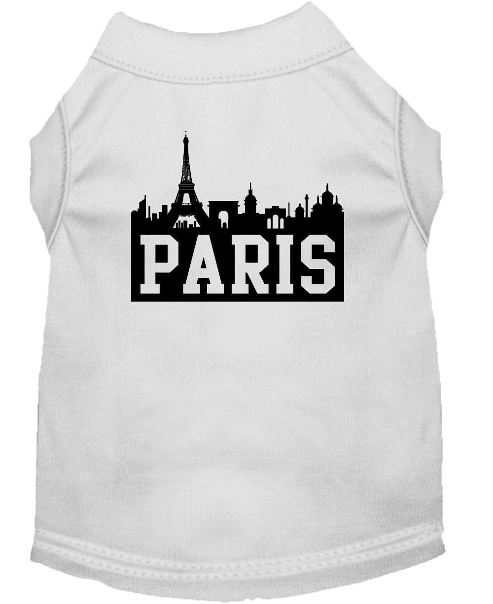 Mirage Pet Products 8-Inch Paris Skyline Screen Print Shirt for Pets, X-Small, White