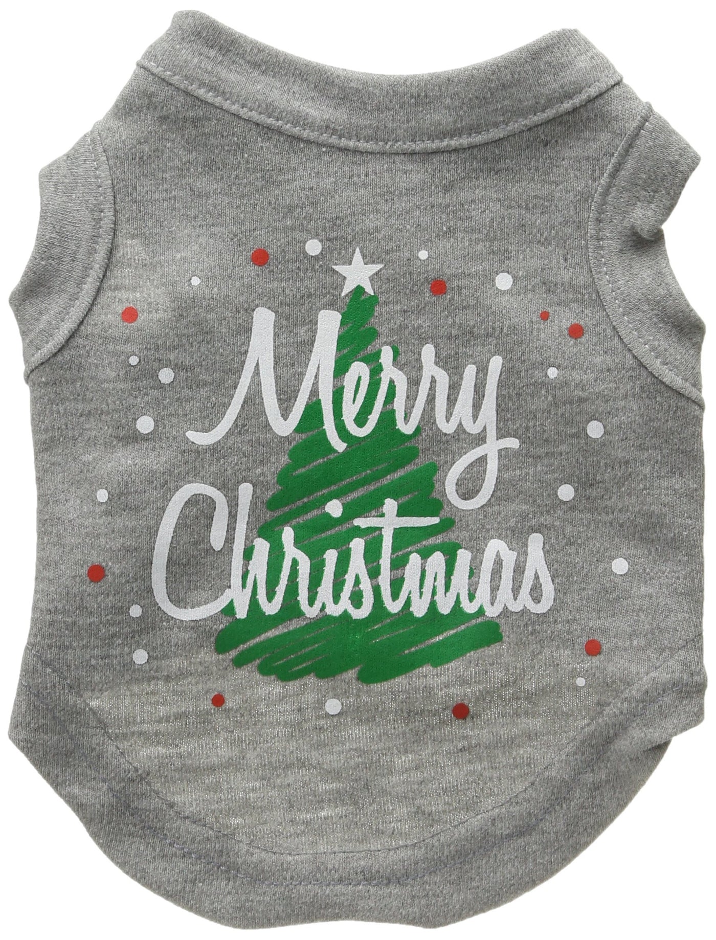 Mirage Pet Products 8-Inch Scribbled Merry Christmas Screenprint Shirts for Pets, X-Small, Grey