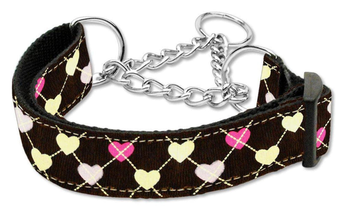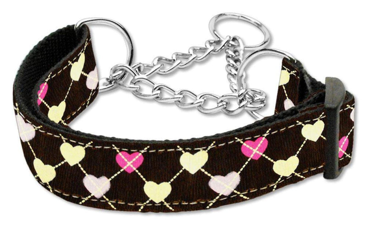 Mirage Pet Products Argyle Hearts Nylon Ribbon Martingale Collar for Pets, Medium, Bright Pink