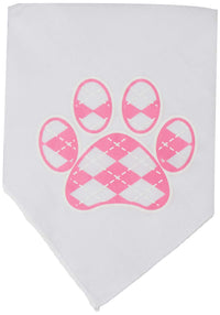 Mirage Pet Products Argyle Paw Pink Screen Print Bandana for Pets, Small, White