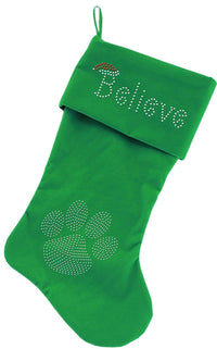 Mirage Pet Products Believe Rhinestone Velvet Christmas Stocking Green 18
