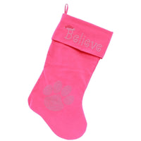 Mirage Pet Products Believe Rhinestone Velvet Christmas Stocking Pink 18