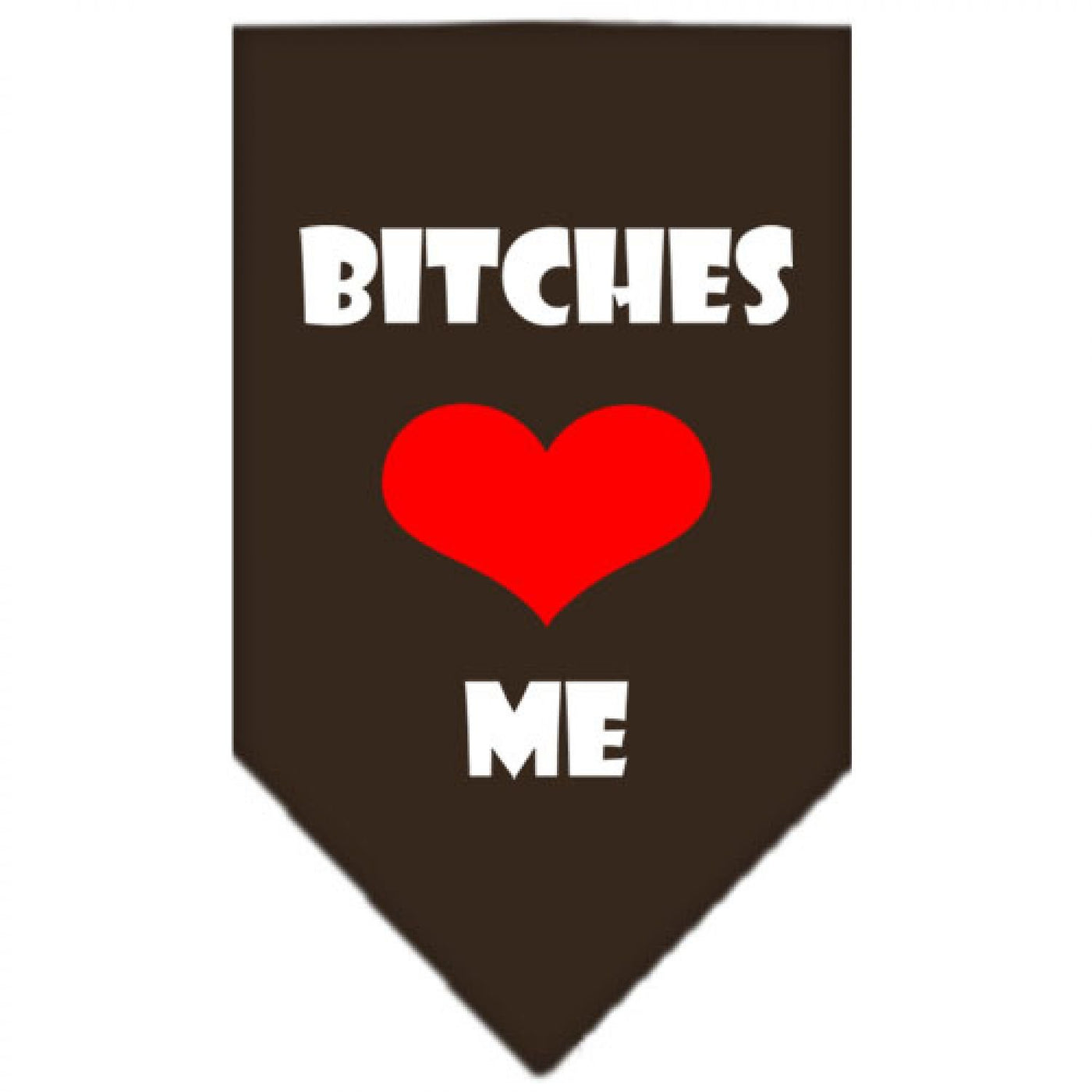 Mirage Pet Products Bitches Love Me Screen Print Bandana for Pets, Small, Cocoa